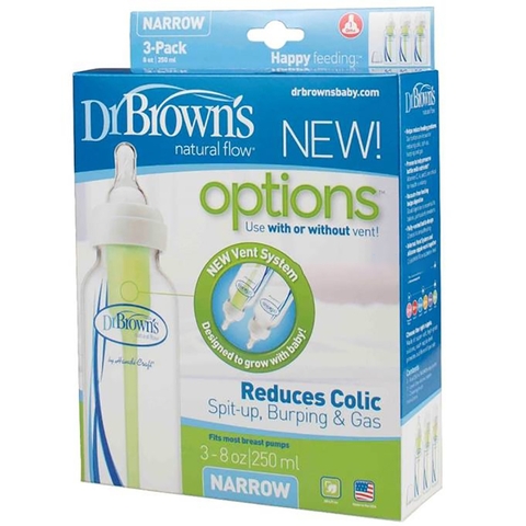 Combo 03 Bình sữa cổ thường 250ml loại ''tùy chọn'' Dr Browns - USA