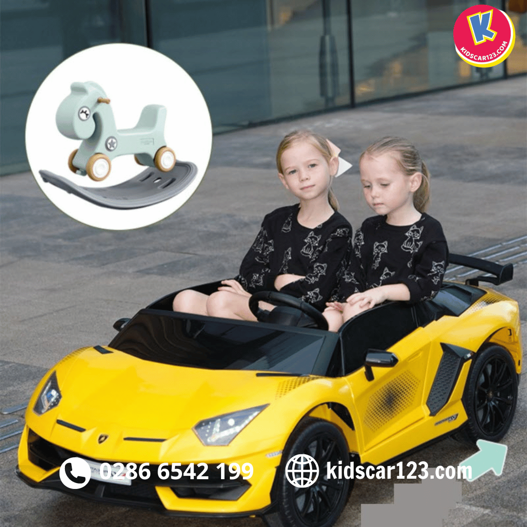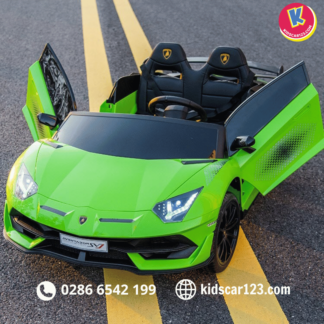 - Thiết kế mô phỏng hoàn hảo: Từng đường nét, chi tiết của xe được mô phỏng tỉ mỉ theo nguyên bản Lamborghini Aventador SVJ, mang đến cho bé cảm giác như đang cầm lái một chiếc siêu xe thực thụ.