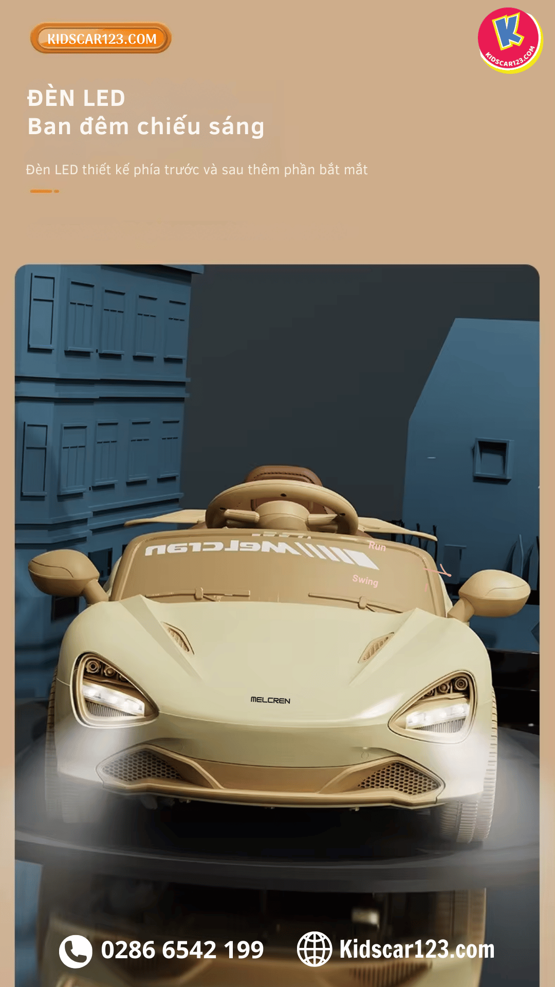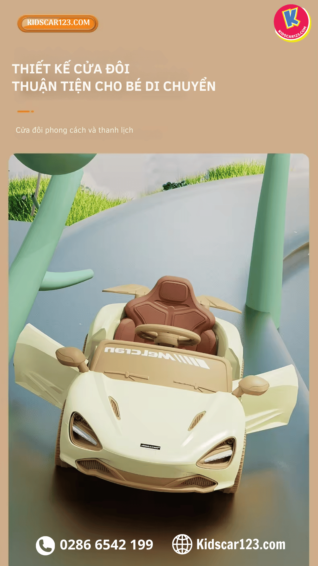 Ô tô điện trẻ em Mclaren BPD-720N kiểu dáng thể thao, được thiết kế ngoại thất giống đến 99 % phiên bản thật và được phía Mclaren đồng ý cấp phép sản xuất và gắn logo, thích hợp cho bé nhỏ 1 đến 4 tuổi , xe hoạt động tốt nhất với bé 18-20kg có dây sít beo an toàn cho bé , xe có chế độ điều khiển từ xa cho bố mẹ, và chế độ tự lái cho bé .