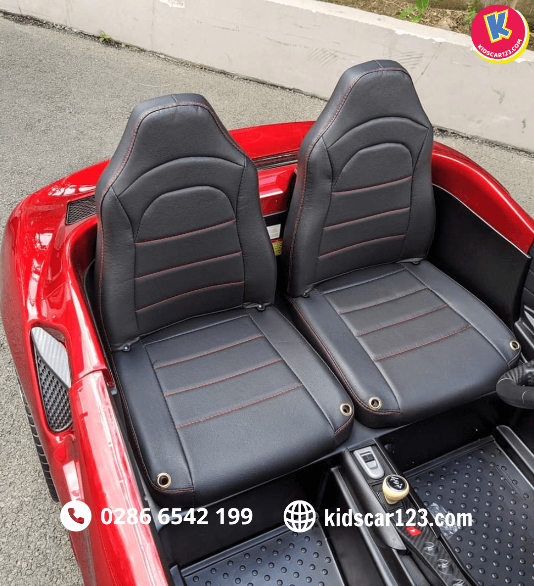 + 2 ghế ngồi của xe thiết kế tựa lưng cao, được làm bằng da cho bé ngồi tựa thỏa mái.
