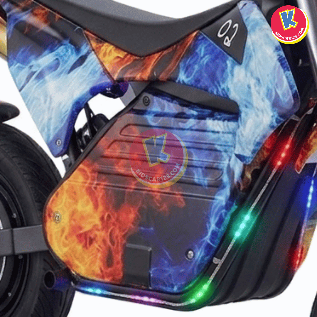 Đèn pha LED siêu sáng: Bố mẹ hoàn toàn yên tâm khi bé chơi vào buổi tối. Đèn pha LED trước siêu sáng giúp bé quan sát rõ đường đi, đồng thời làm chiếc xe trông "ngầu" hơn rất nhiều.