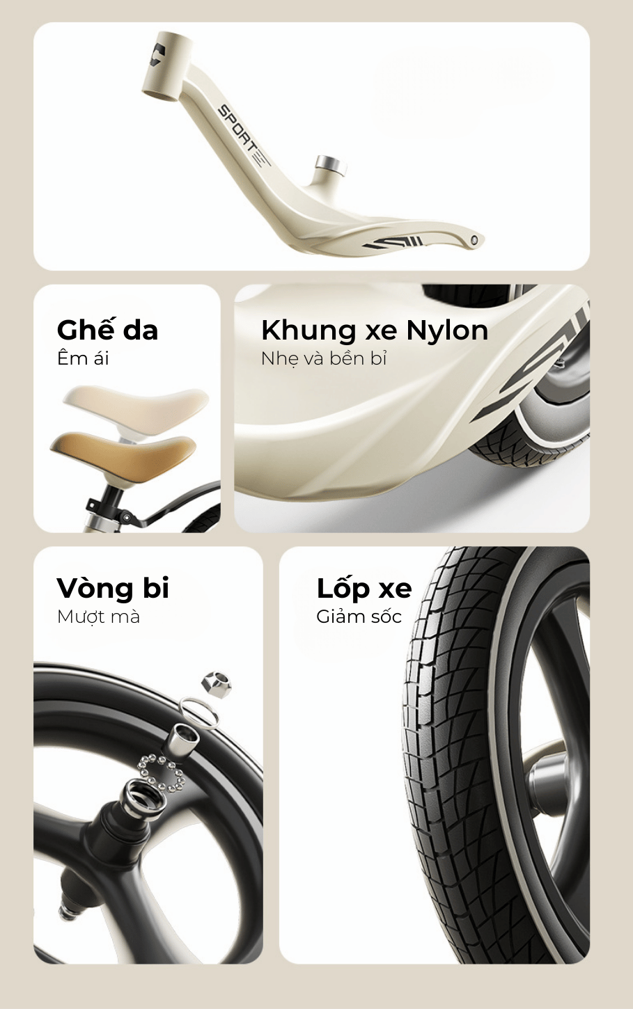 Nhìn con loay hoay rồi tự tin lướt đi trên "người bạn" mới, mẹ sẽ thấy con lớn khôn và dạn dĩ hơn mỗi ngày. Chiếc xe không chỉ giúp con cứng cáp đôi chân, mà còn dạy con cách xử lý tình huống, rèn luyện sự tự tin khi tự mình làm chủ tốc độ.