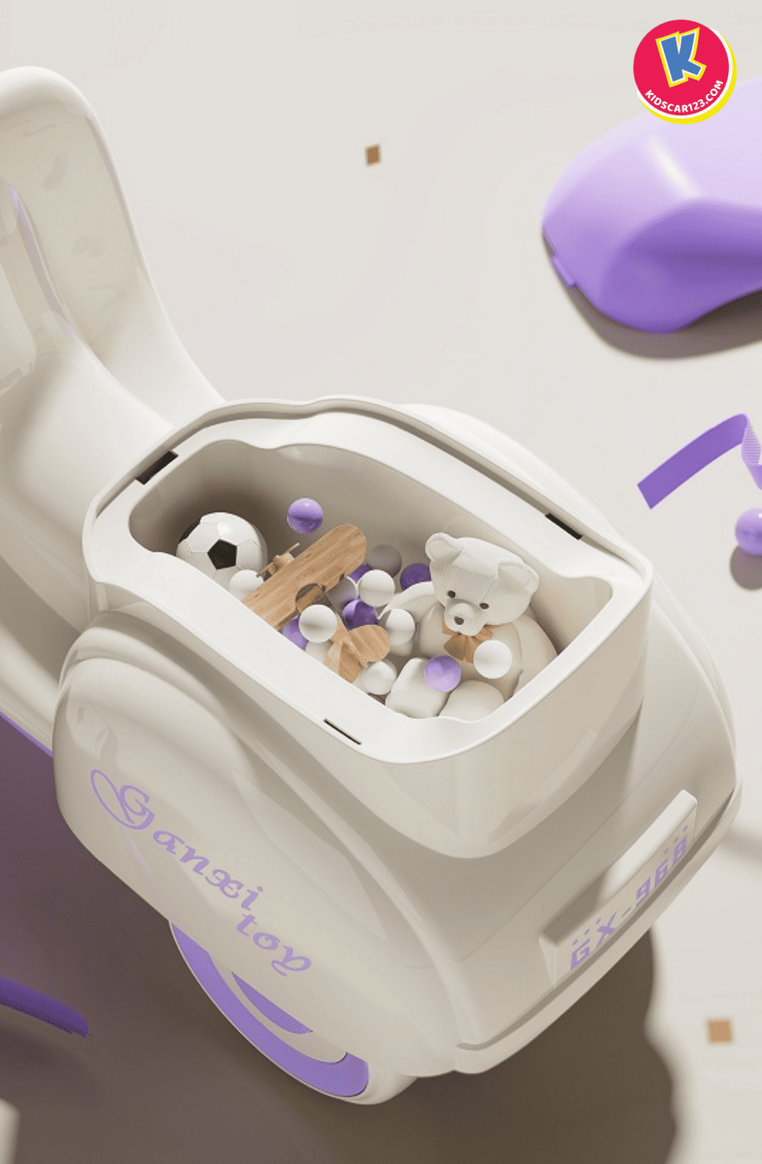 Cốp xe thần kỳ: Dưới yên xe là một khoang chứa đồ rộng rãi. Bé có thể mang theo gấu bông, bóng nhỏ, hoặc bánh kẹo yêu thích trong mỗi chuyến đi.