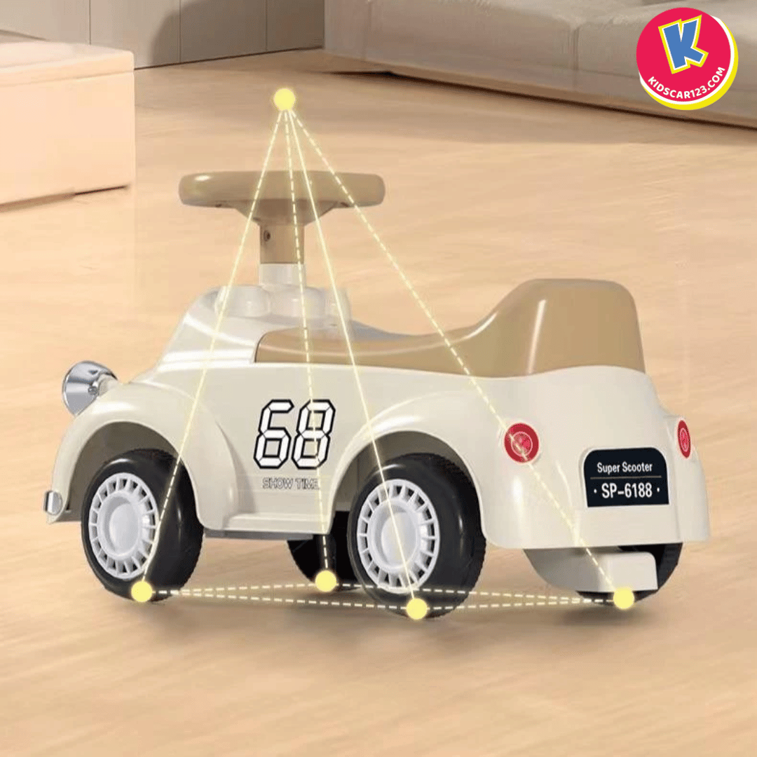 Xe Chòi Ô Tô 68 Model 6188 được thiết kế dành riêng cho trẻ nhỏ, giúp bé làm quen với xe chòi chân một cách dễ dàng và an toàn. Các góc cạnh được bo tròn, không có chi tiết sắc nhọn. Ghế ngồi có tựa lưng chống ngửa. Bốn bánh xe vững chãi giúp xe khó bị lật.