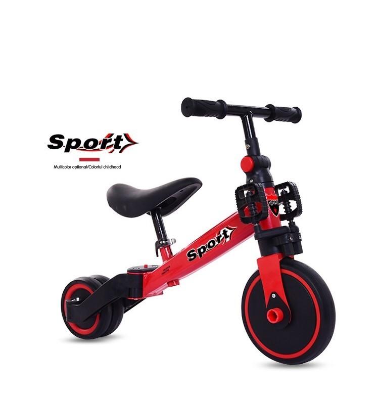 Là sản phẩm đa năng 3 trong 1, bé vừa có thể chòi chân với 3 bánh (khi bé còn nhỏ và chưa có khả năng giữ thăng bằng), bé lớn hơn chút thì ta có thể cắm bàn đạp vào cho bé đạp, hoặc gập 2 bánh sau lại thành xe thăng bằng (khi bé có khả năng tự cân bằng được). Vì vậy, bố mẹ không cần phải mua quá nhiều xe cho bé, chỉ cần 1 xe này là đủ để bé phát triển cơ rồi.