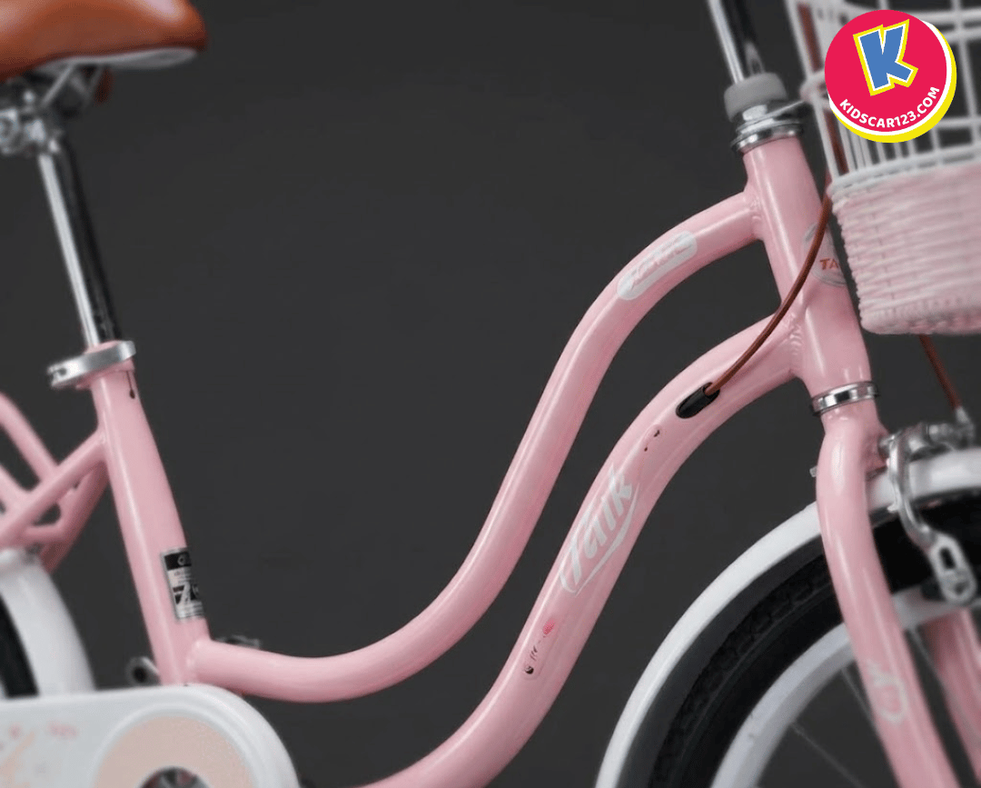 Khung xe "Cổ thiên nga": Khung xe được uốn cong võng sâu mềm mại. Thiết kế này không chỉ tạo nên vẻ đẹp nữ tính mà còn rất thực dụng, giúp các bé gái mặc váy vẫn có thể bước lên và xuống xe cực kỳ duyên dáng, dễ dàng.