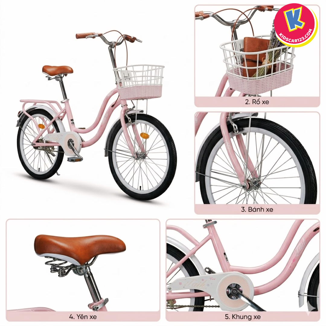 Khi bé yêu bắt đầu bước vào giai đoạn tự lập, tự mình đạp xe đến trường hay dạo chơi cùng bạn bè, con sẽ cần một chiếc xe không chỉ chắc chắn, đạp nhẹ mà còn phải thực sự "có gu" thẩm mỹ. Xe Đạp Bé Gái TK 15 chính là món quà hoàn hảo đáp ứng mọi tiêu chí đó. Lấy cảm hứng từ những chiếc xe đạp dạo phố Châu Âu cổ điển, TK 15 mang đến vẻ đẹp đài các, thanh lịch, giúp con tự tin tỏa sáng trên mọi cung đường.