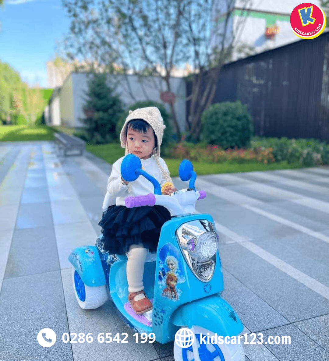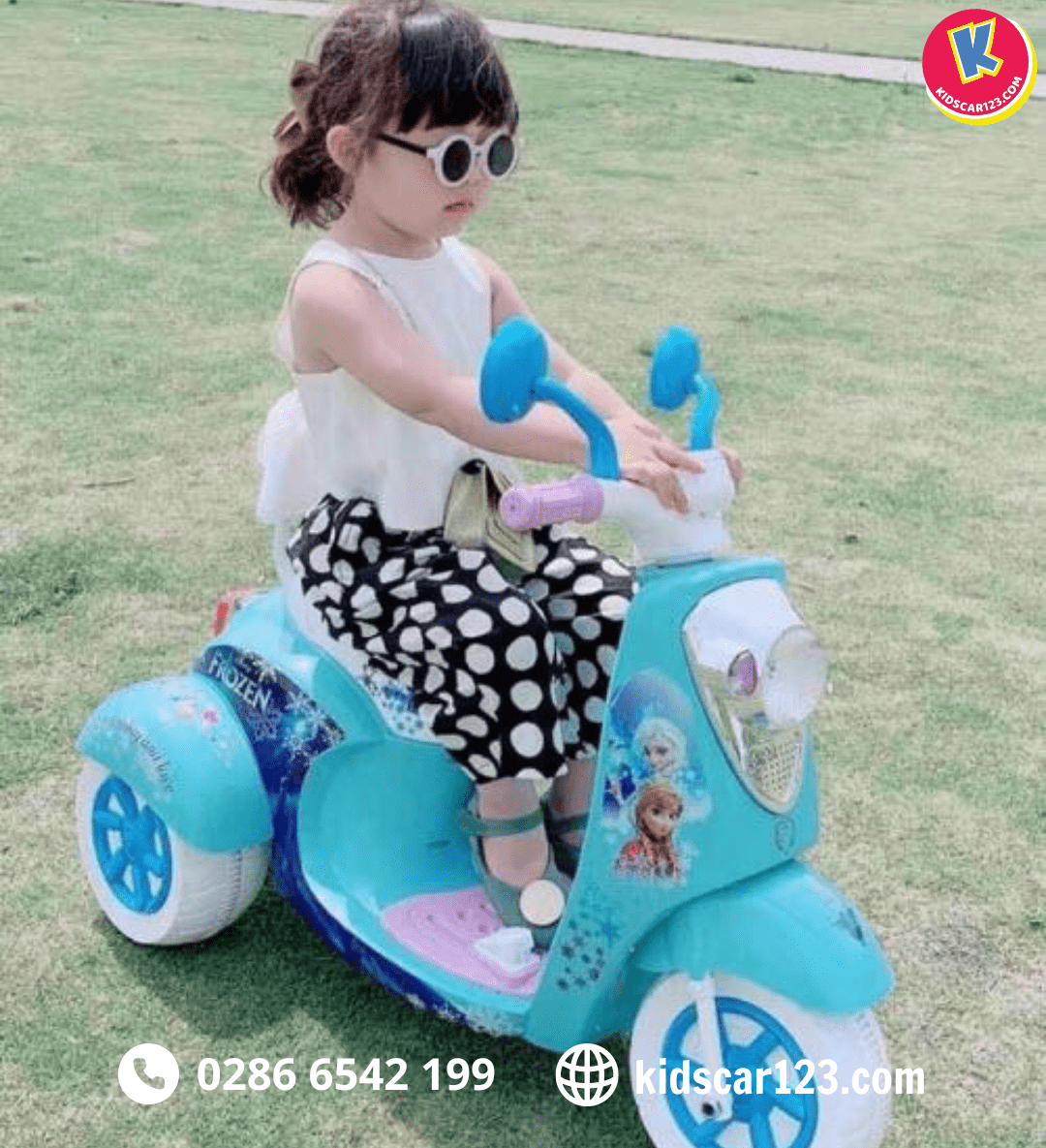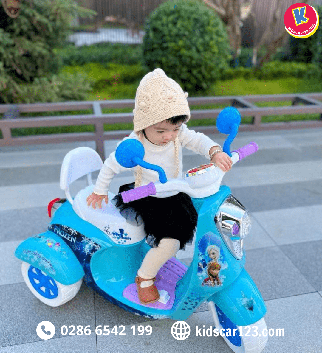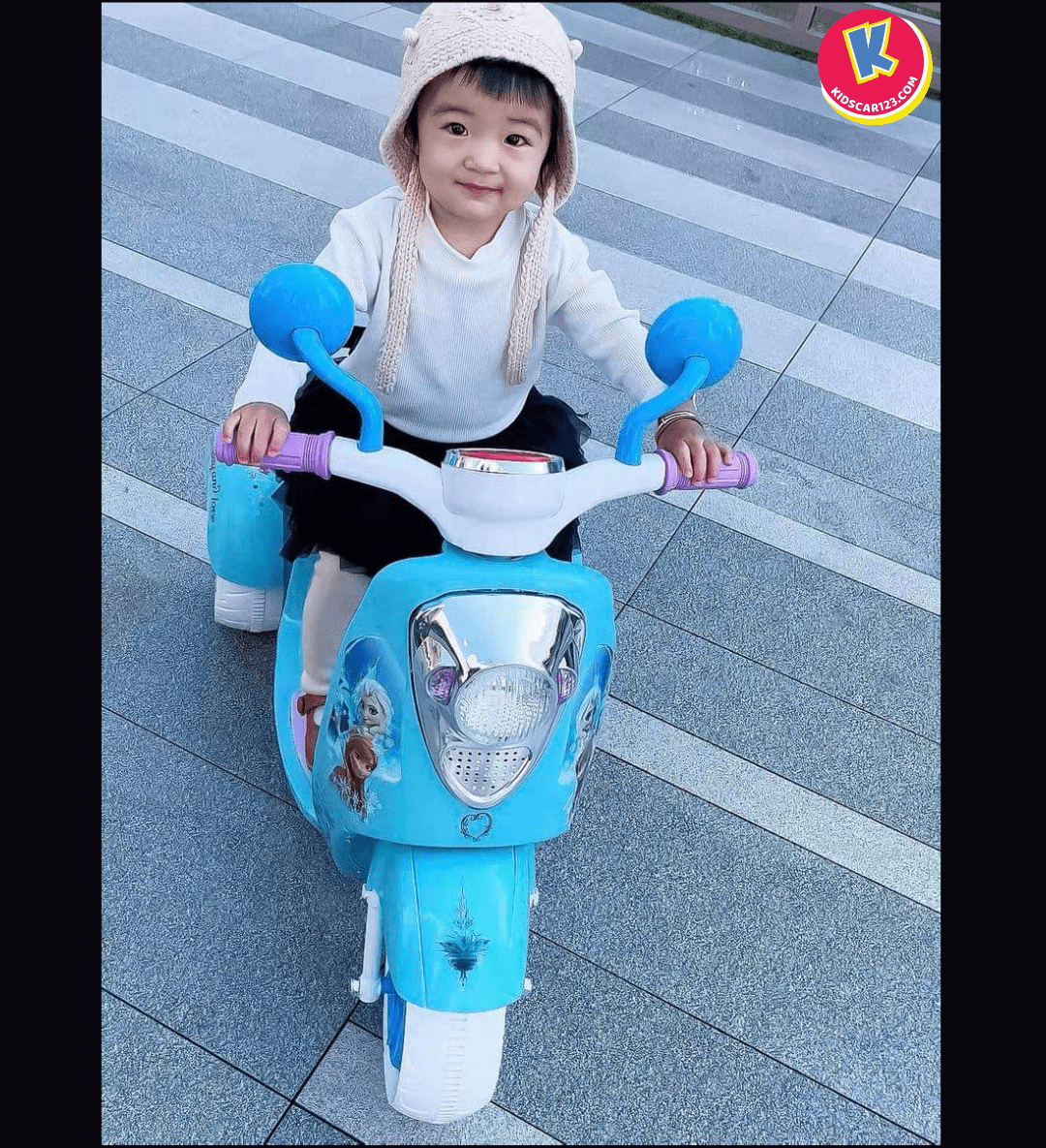Nắm bắt được xu hướng đó, các chuyên gia thiết kế xe máy điện trẻ em đã cho ra đời sản phẩm xe máy điện trẻ em Elsa qm-168 vô cùng điệu đà và nữ tính với tông màu trắng xanh phối hợp, đậm tông màu của công chúa Elsa.