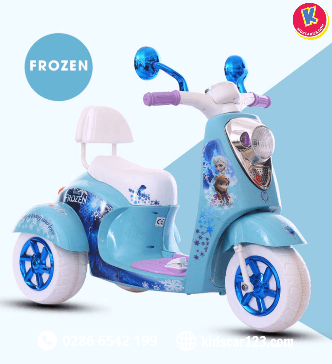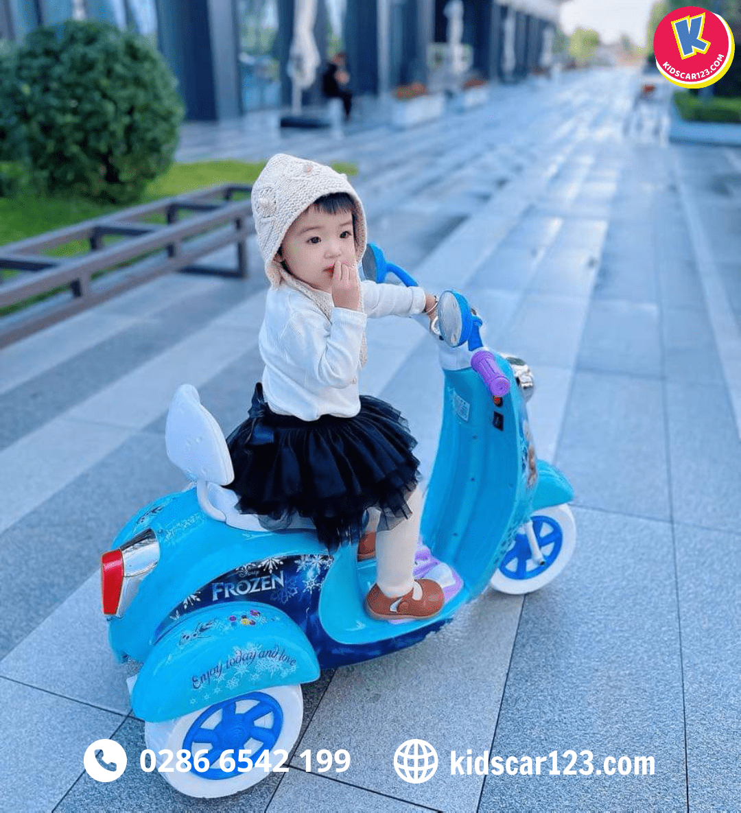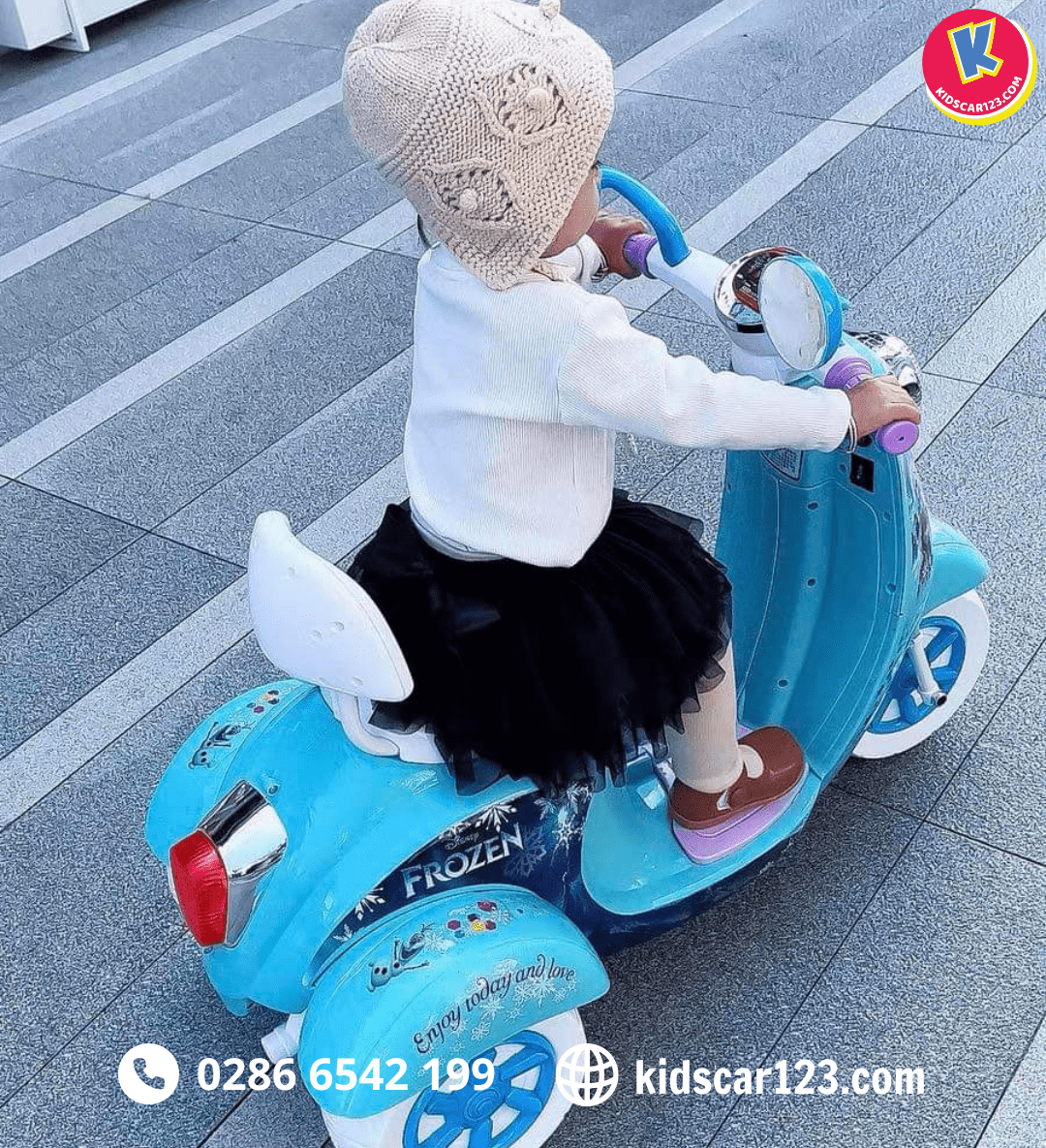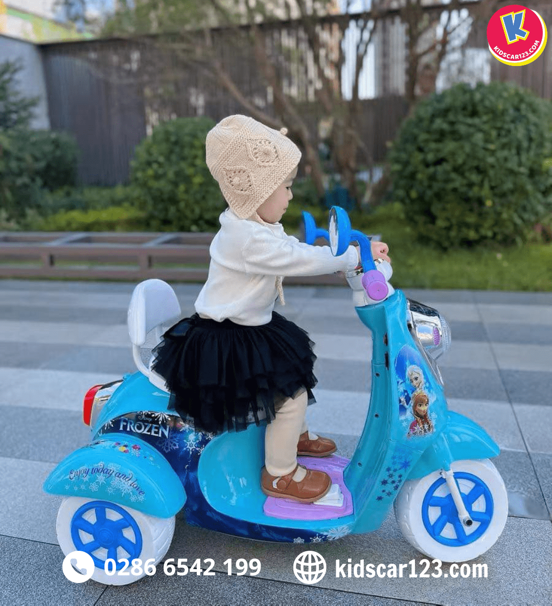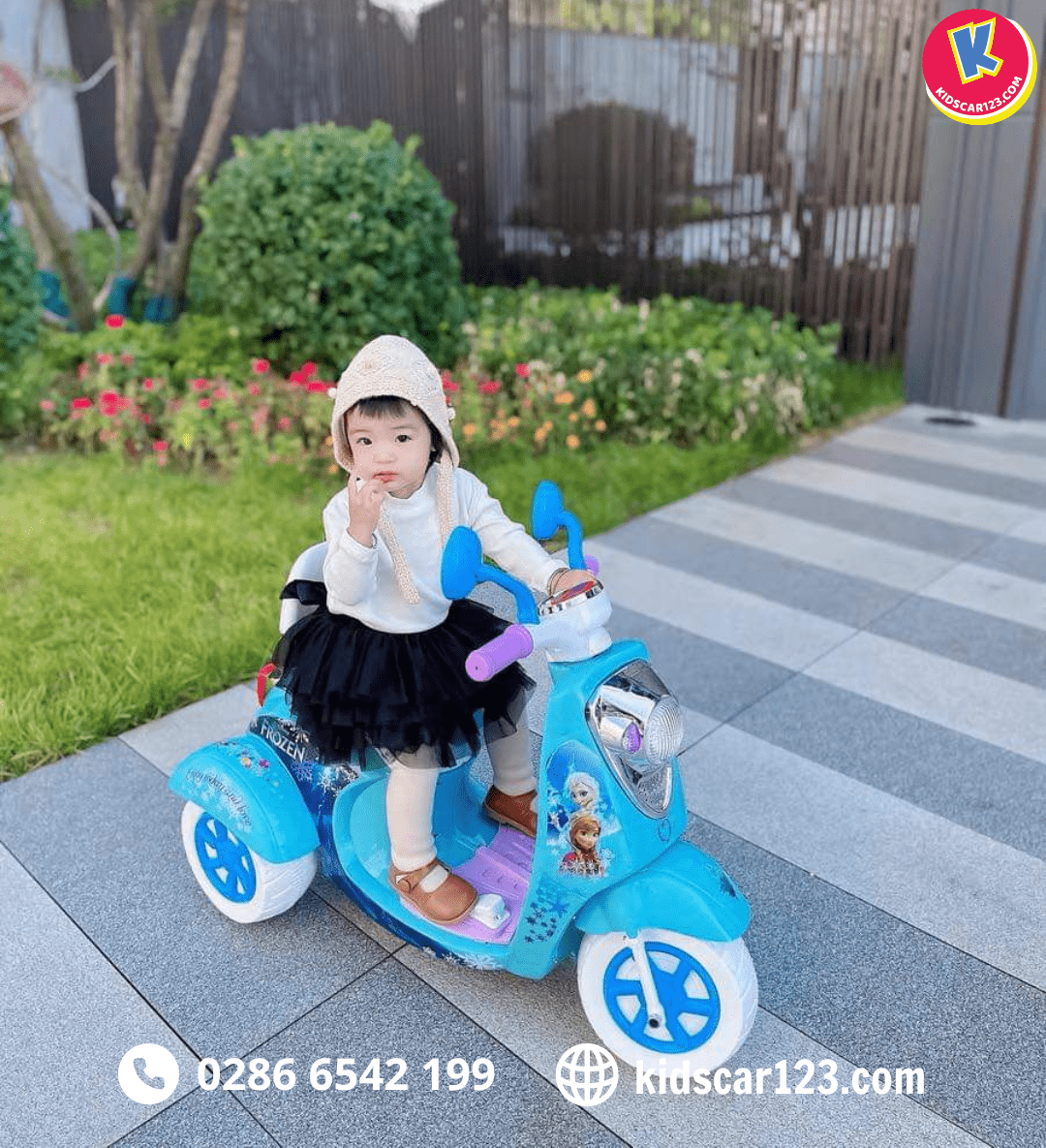 Nắm bắt được xu hướng đó, các chuyên gia thiết kế xe máy điện trẻ em đã cho ra đời sản phẩm xe máy điện trẻ em Elsa qm-168 vô cùng điệu đà và nữ tính với tông màu trắng xanh phối hợp, đậm tông màu của công chúa Elsa.