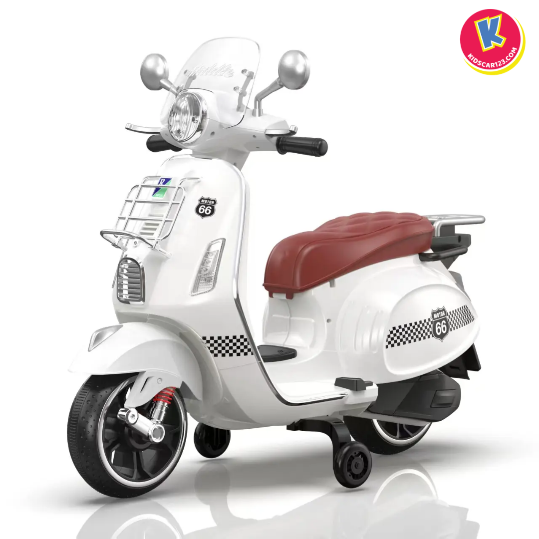 Nếu những chiếc xe thể thao hầm hố là chân ái của bé trai, thì một chiếc xe tay ga mang kiểu dáng Vespa lãng mạn chính là "giấc mơ" của mọi bé gái. Xe máy trẻ em 1389-1 mang trọn vẹn nét thanh lịch của phong cách Ý, biến mỗi buổi dạo chơi của con thành một thảm đỏ thời trang. Không chỉ đẹp xuất sắc, xe còn cực kỳ an toàn và thân thiện, giúp các "tiểu thư" nhí tự tin cầm lái ngay từ lần đầu tiên.