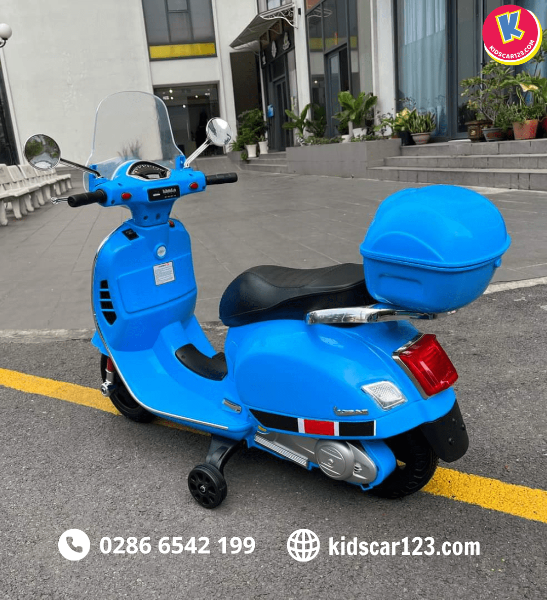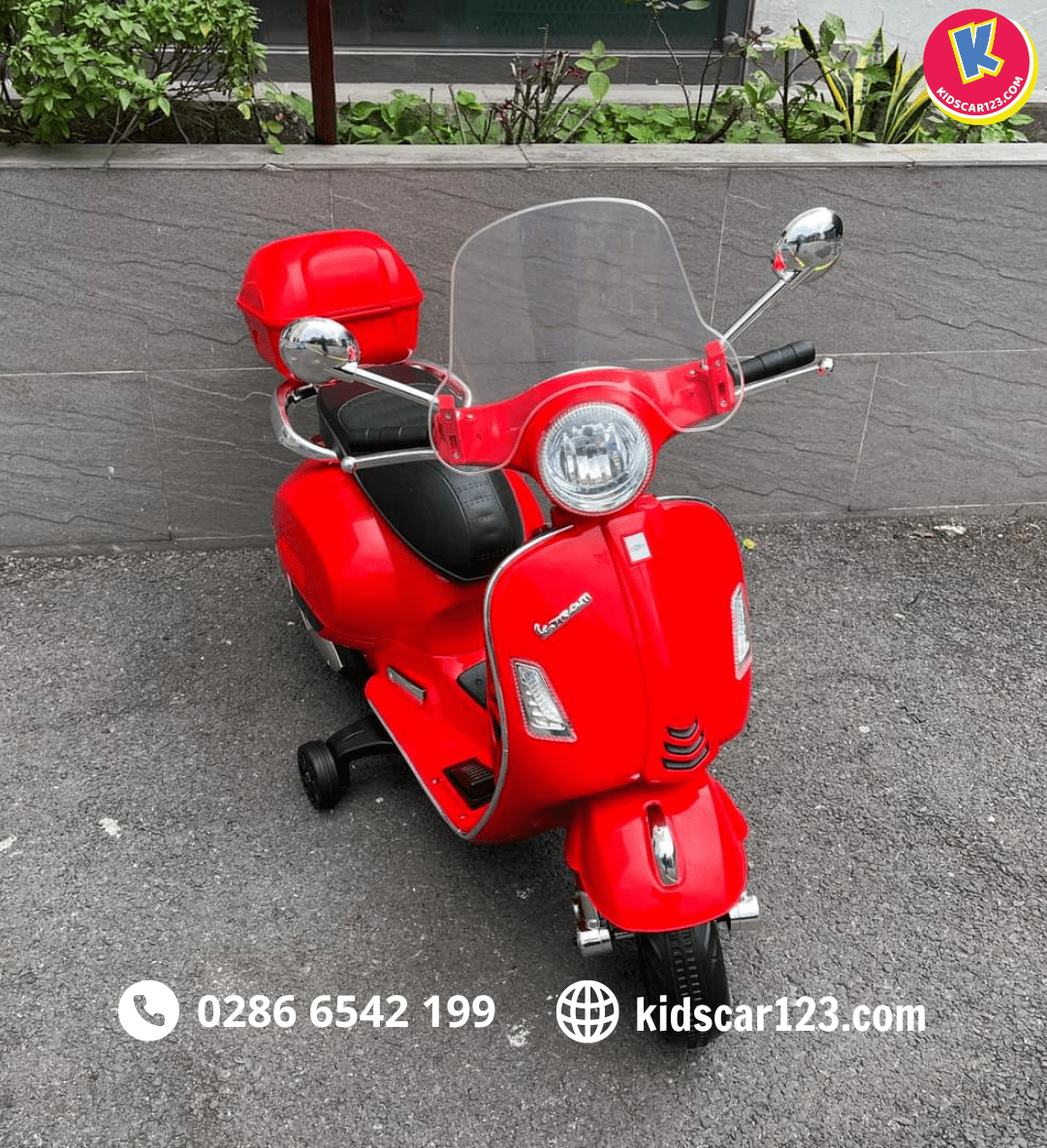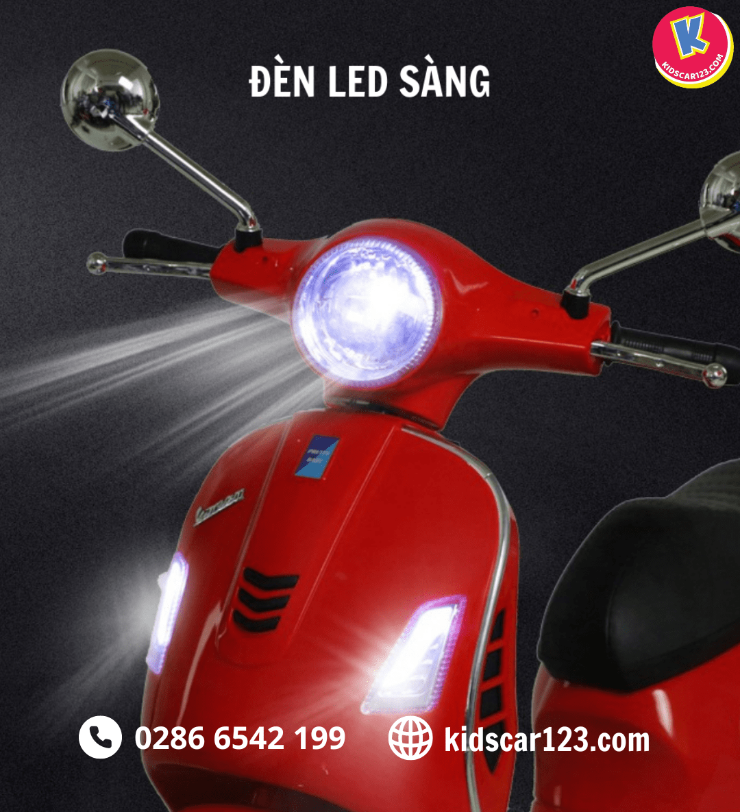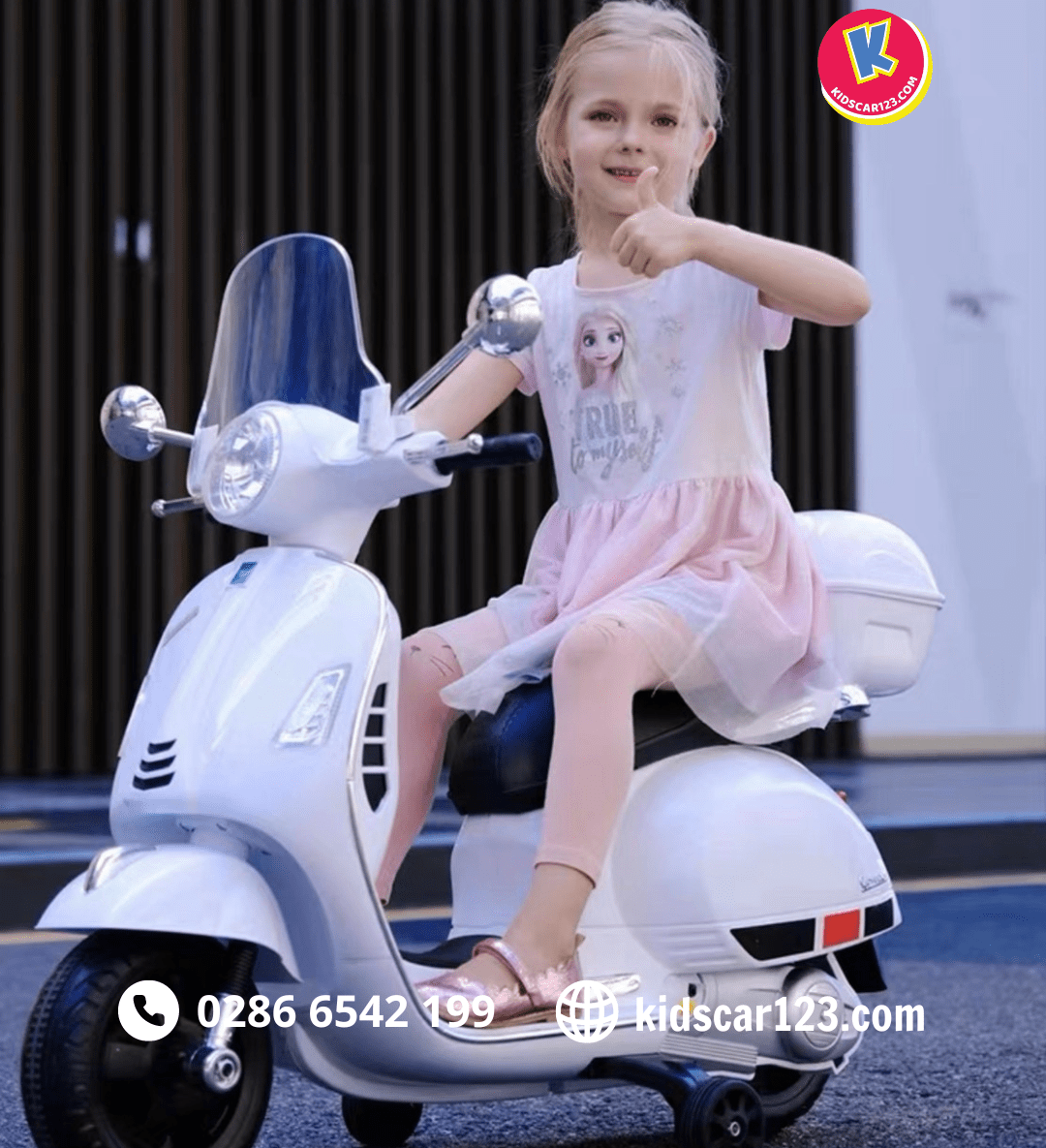 + Vespa Q618-1vận hành mạnh mẽ nhờ tích hợp 2 động cơ, kết hợp với 2 bình ắc quy 6V giúp quá trình chơi xe của bé được lâu.