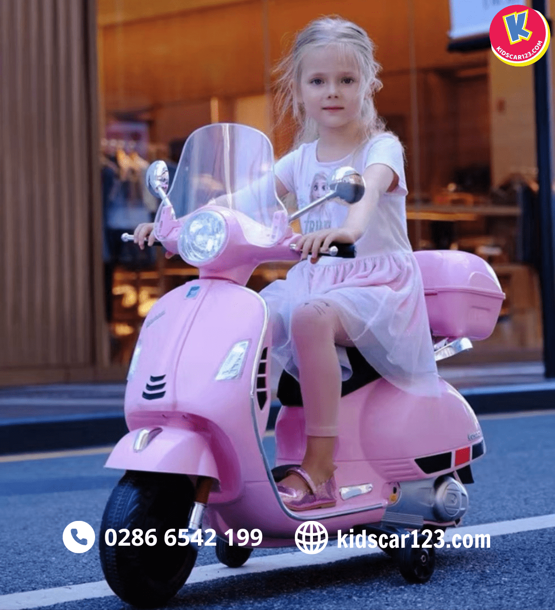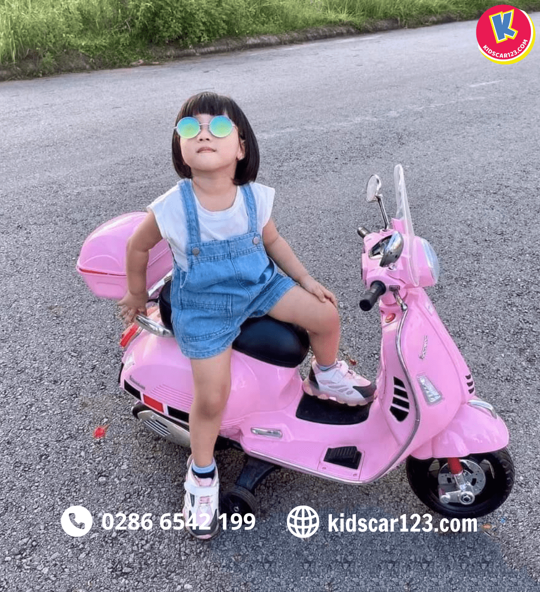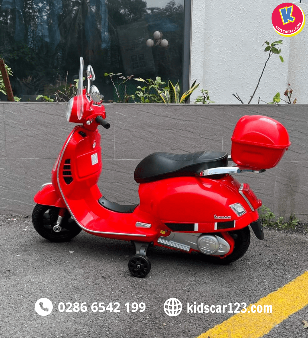 + Vespa Q618-1vận hành mạnh mẽ nhờ tích hợp 2 động cơ, kết hợp với 2 bình ắc quy 6V giúp quá trình chơi xe của bé được lâu.
