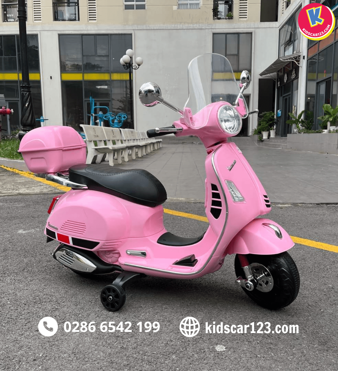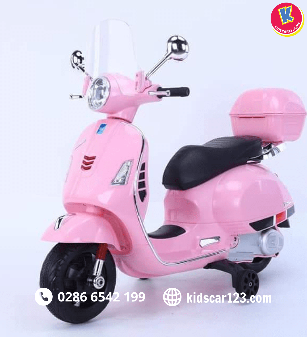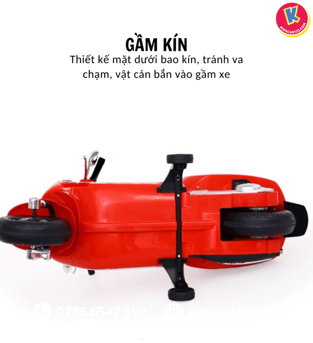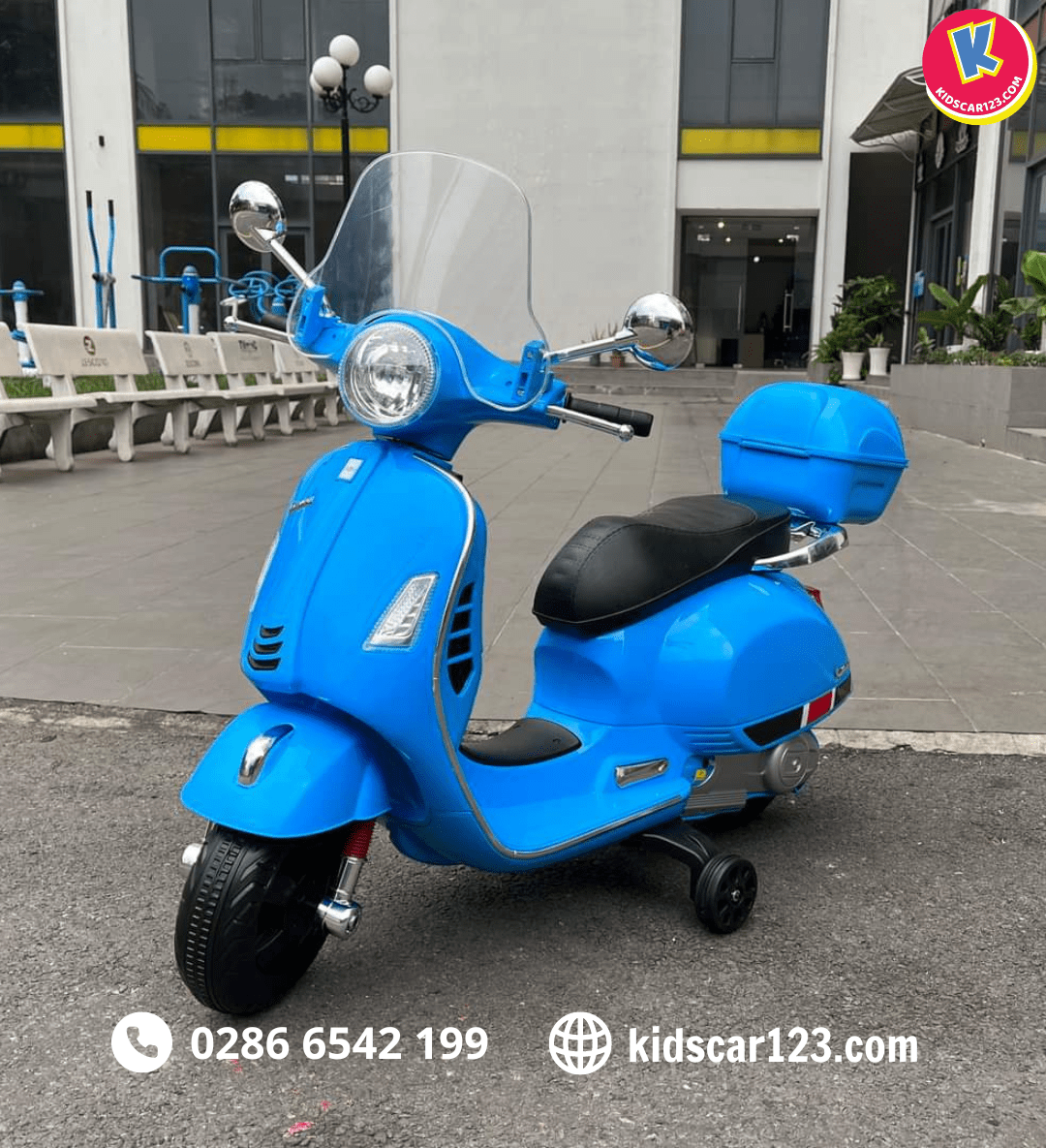 + Vespa Q618-1vận hành mạnh mẽ nhờ tích hợp 2 động cơ, kết hợp với 2 bình ắc quy 6V giúp quá trình chơi xe của bé được lâu.