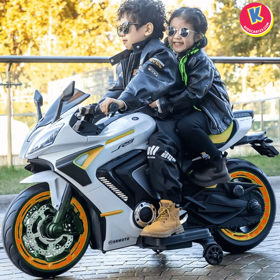 Yên xe phân tầng (Yên đôi): Thiết kế yên xe mô phỏng đúng chuẩn các dòng siêu xe Sportbike ngoài đời thực, với vị trí người cầm lái và vị trí người ngồi sau nhô cao hơn một chút. Nhờ đó, hai bé có thể cùng ngồi lên xe vô cùng thoải mái và an toàn.