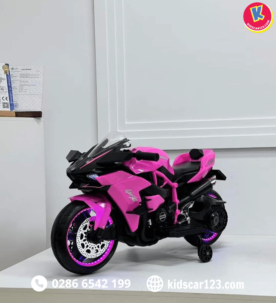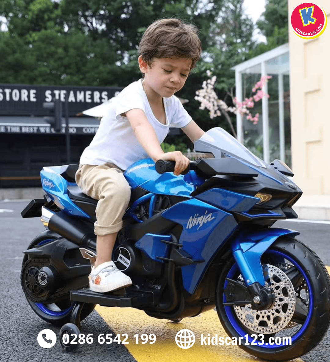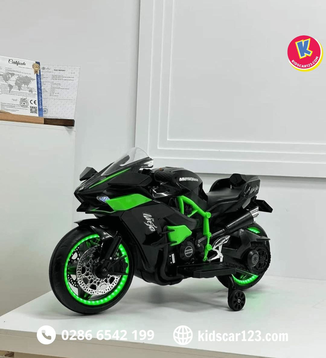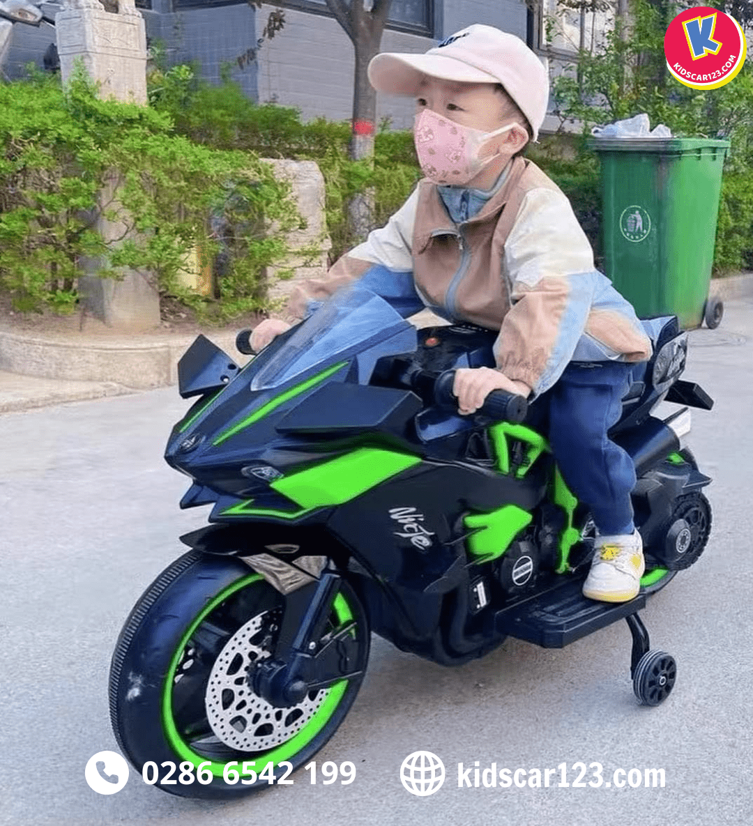 - Xe máy điện trẻ em Kawasaki Ninja H2R được thiết kế kiểu dáng thể thao khoẻ khoắn đúng chất của dòng xe trứ danh.