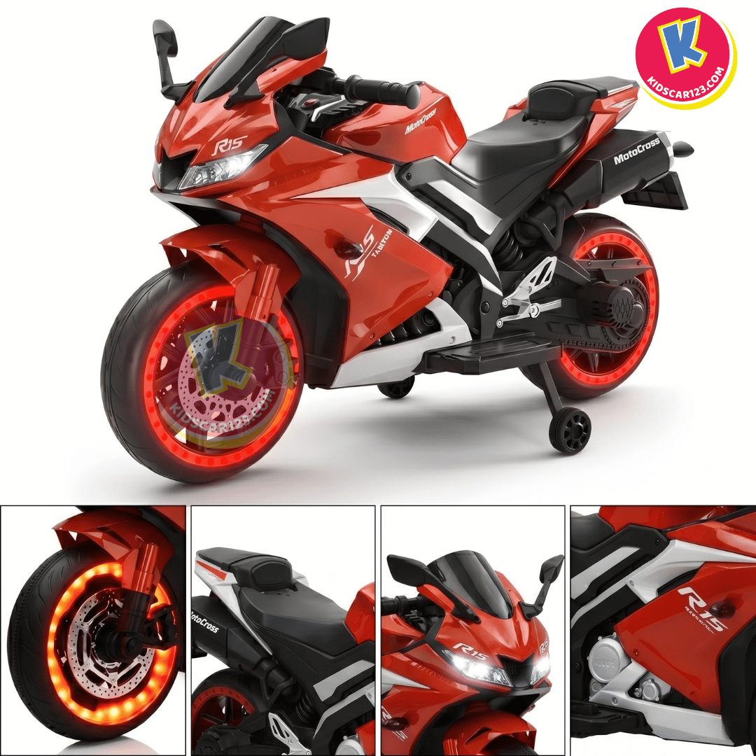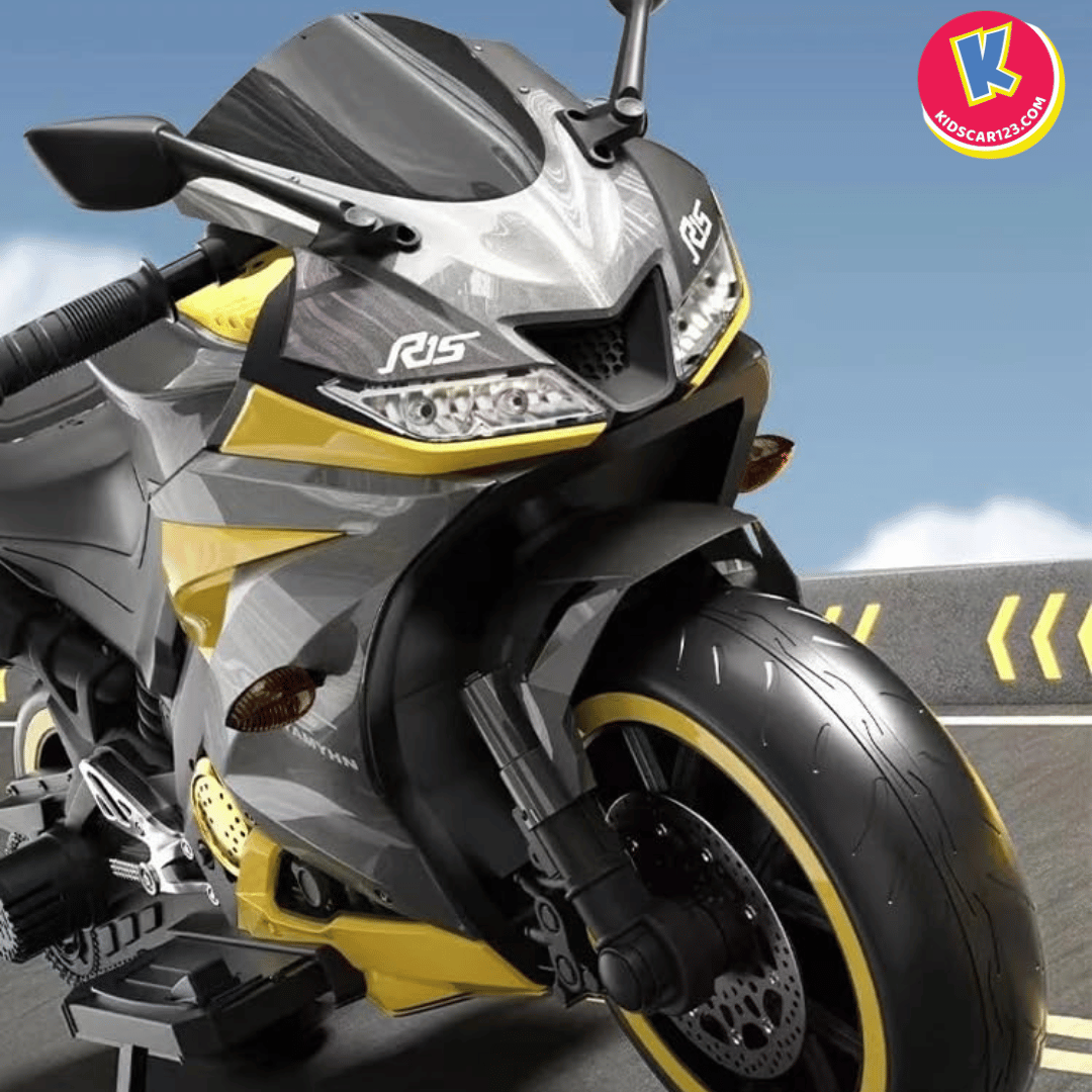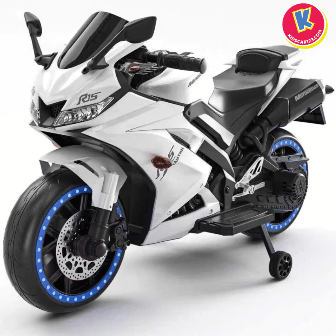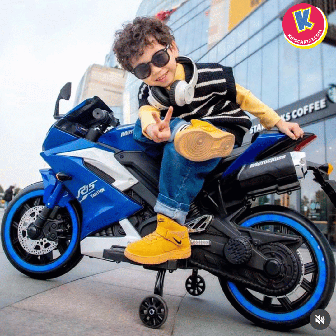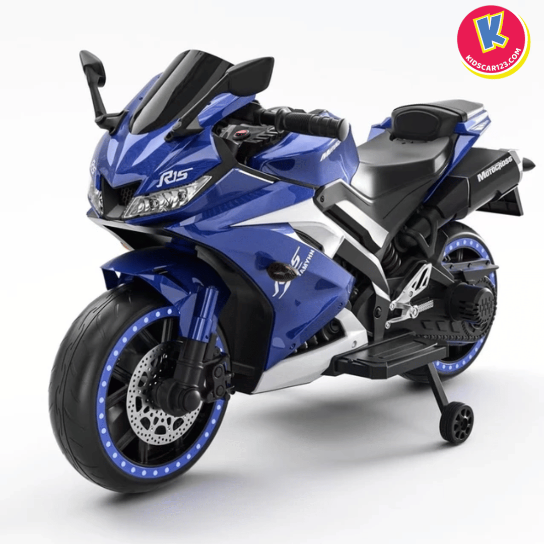 Nếu bé nhà bạn là một "tín đồ" của những chiếc xe đua tốc độ, luôn ngoái nhìn những chiếc mô tô phân khối lớn gầm rú trên đường, thì Xe Mô Tô Điện Trẻ Em R15 chính là món quà biến ước mơ của con thành hiện thực. Với thiết kế đậm chất Sportbike, những đường nét sắc sảo cắt xẻ khí động học và dàn đèn LED bánh xe "độc nhất vô nhị", R15 không chỉ là một món đồ chơi, mà là một "chiến mã" thực thụ khẳng định cá tính cực ngầu của bé.