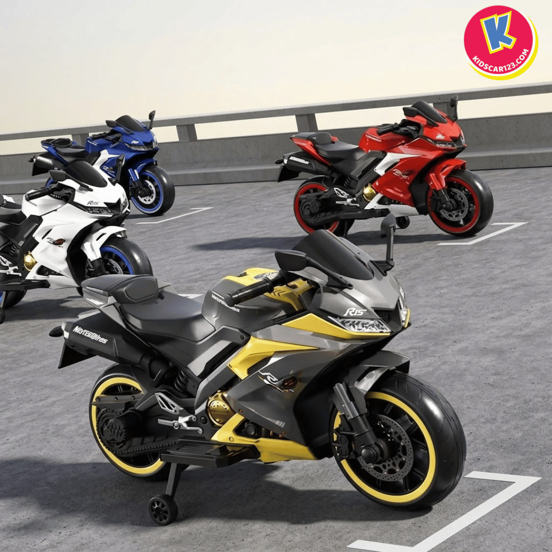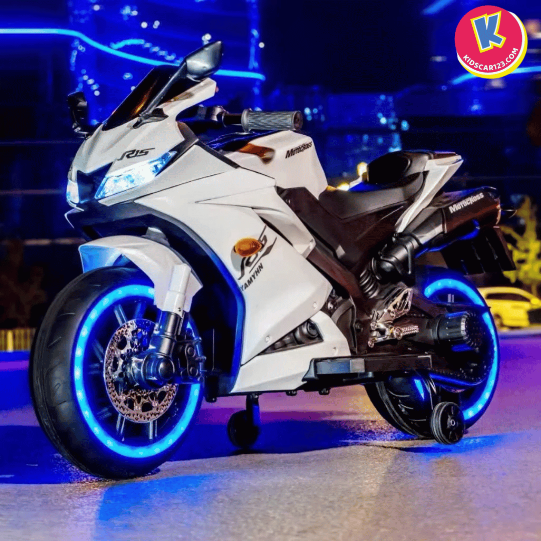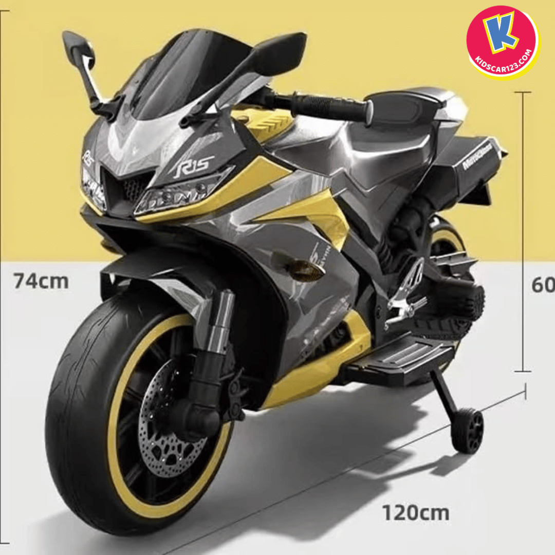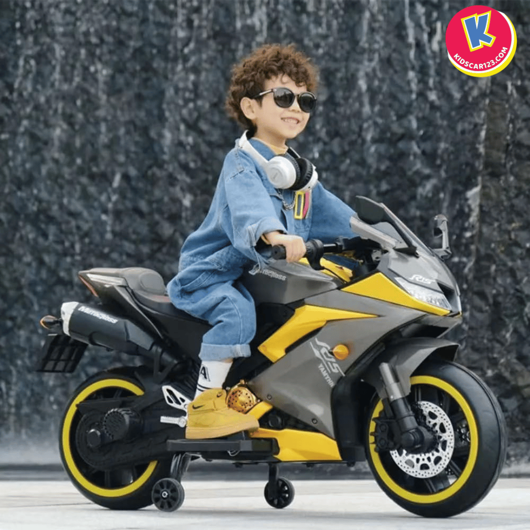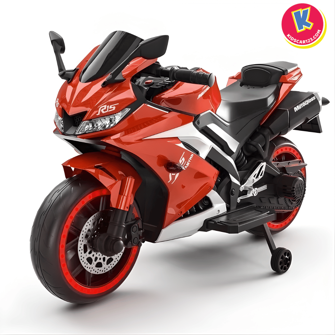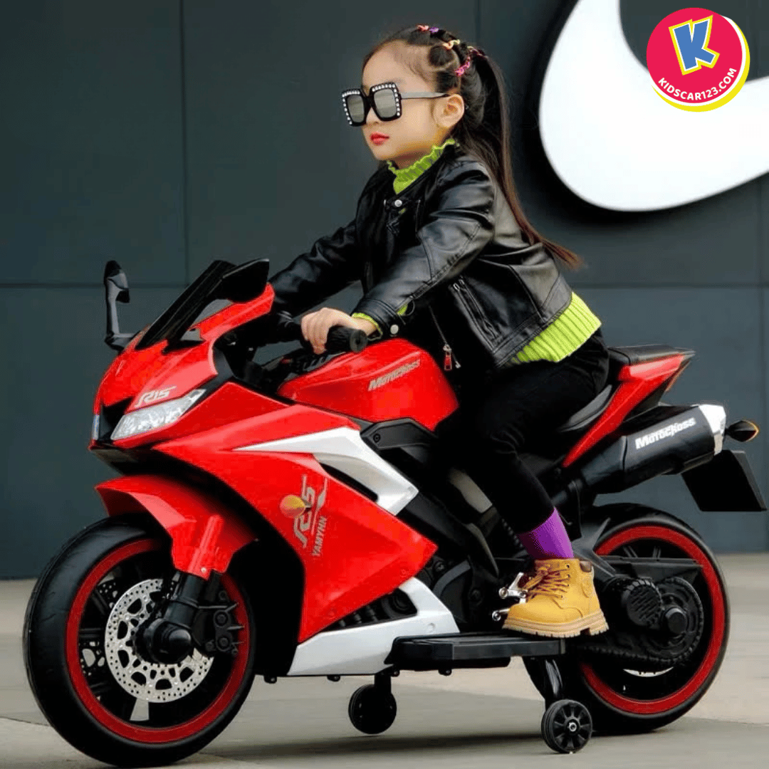 Nếu bé nhà bạn là một "tín đồ" của những chiếc xe đua tốc độ, luôn ngoái nhìn những chiếc mô tô phân khối lớn gầm rú trên đường, thì Xe Mô Tô Điện Trẻ Em R15 chính là món quà biến ước mơ của con thành hiện thực. Với thiết kế đậm chất Sportbike, những đường nét sắc sảo cắt xẻ khí động học và dàn đèn LED bánh xe "độc nhất vô nhị", R15 không chỉ là một món đồ chơi, mà là một "chiến mã" thực thụ khẳng định cá tính cực ngầu của bé.