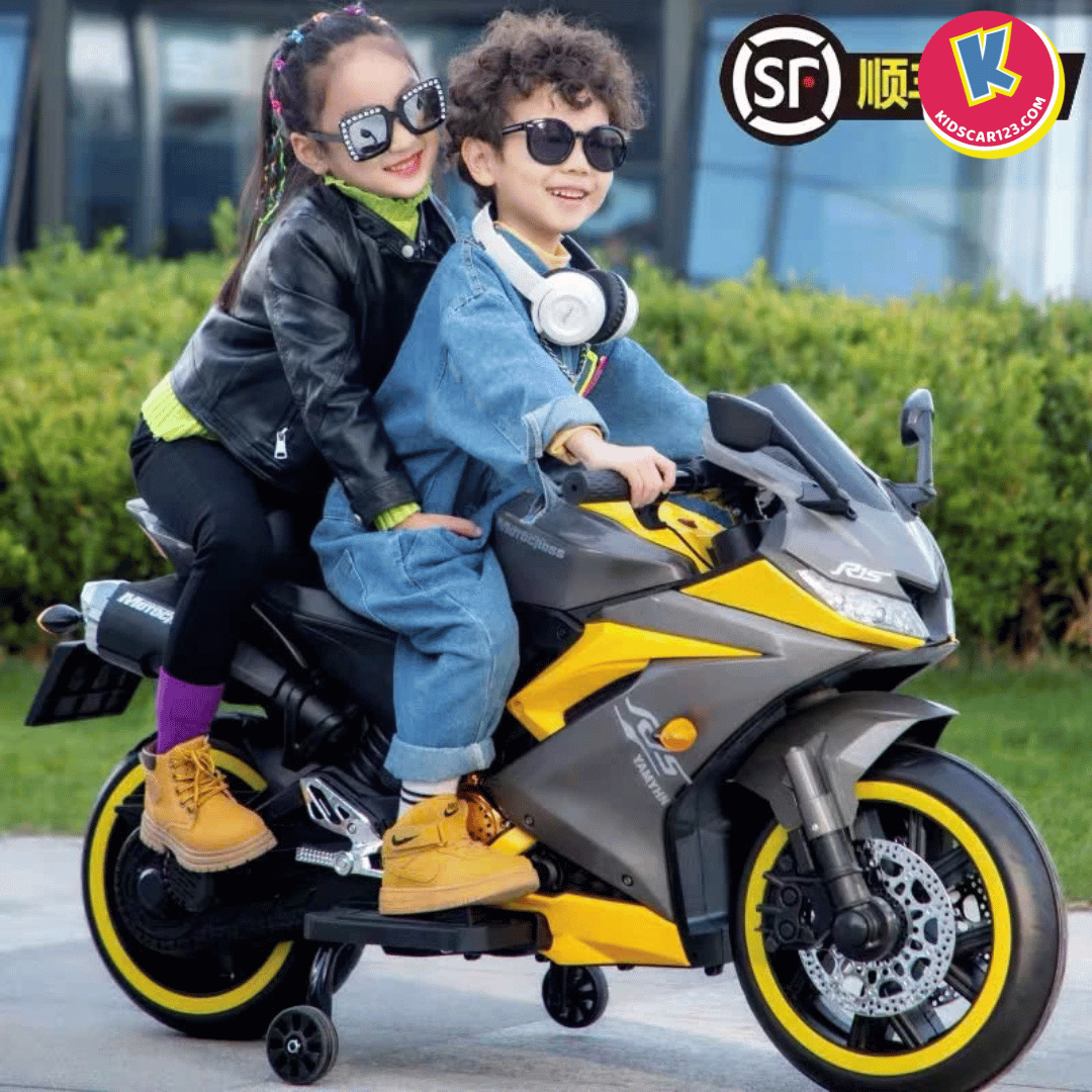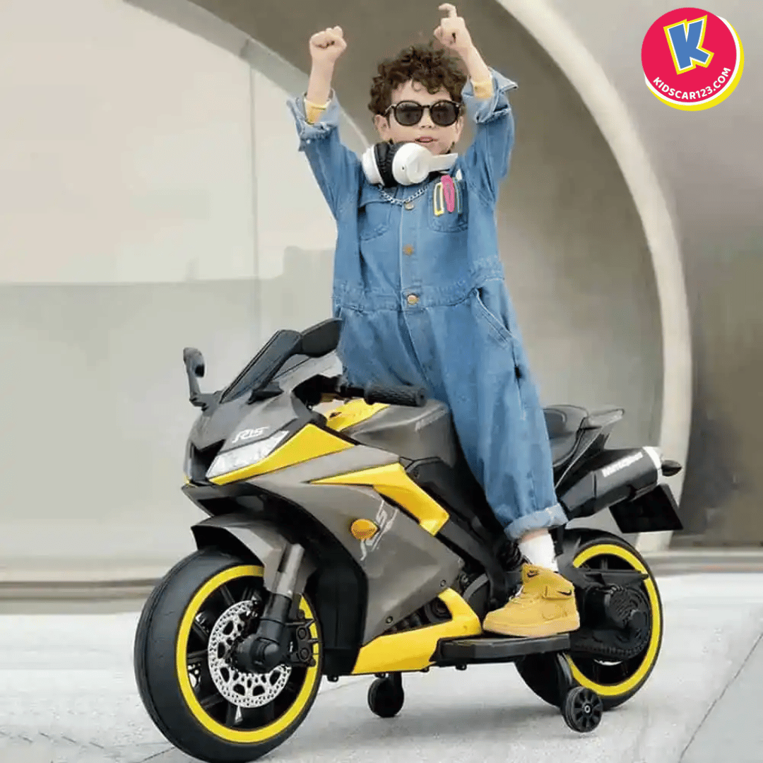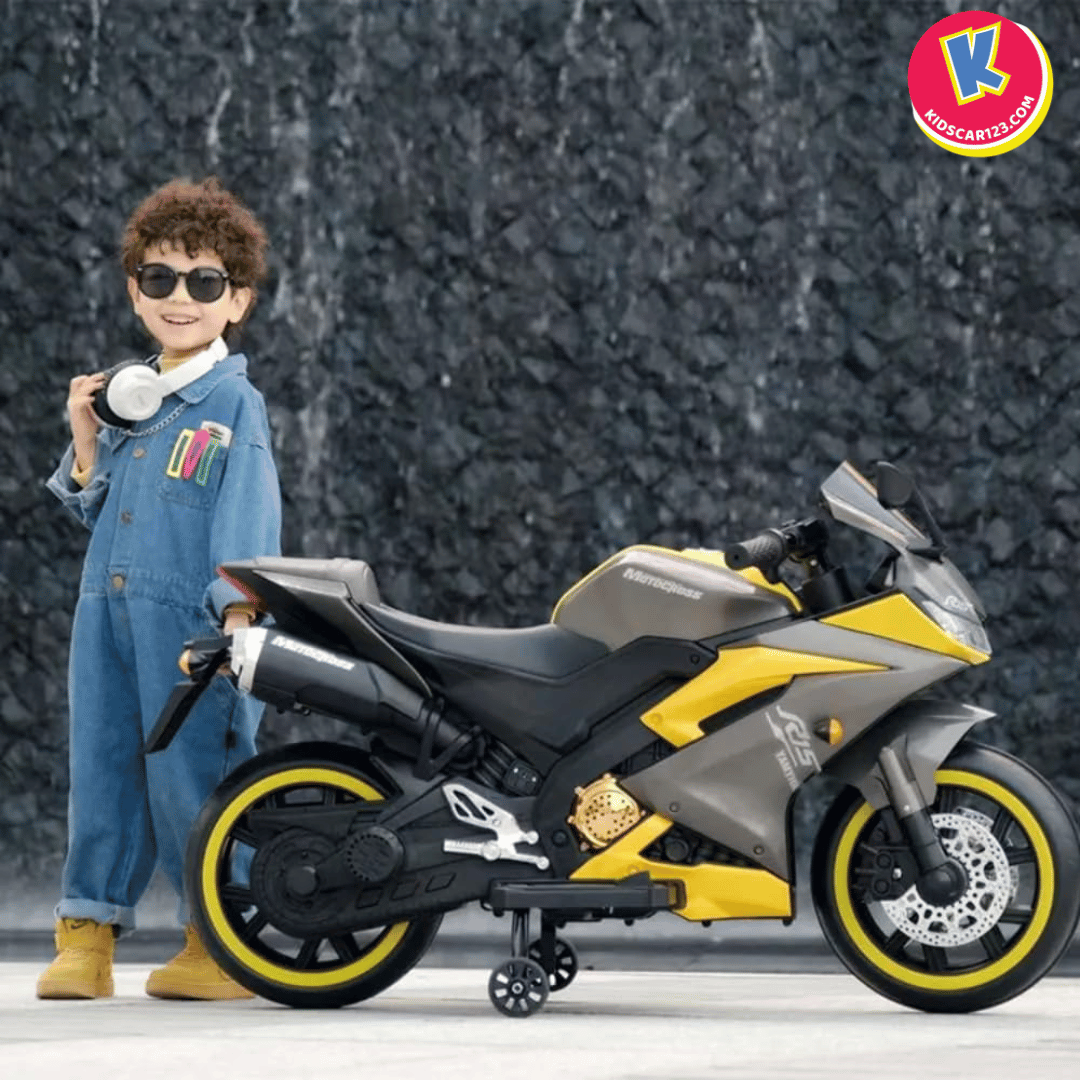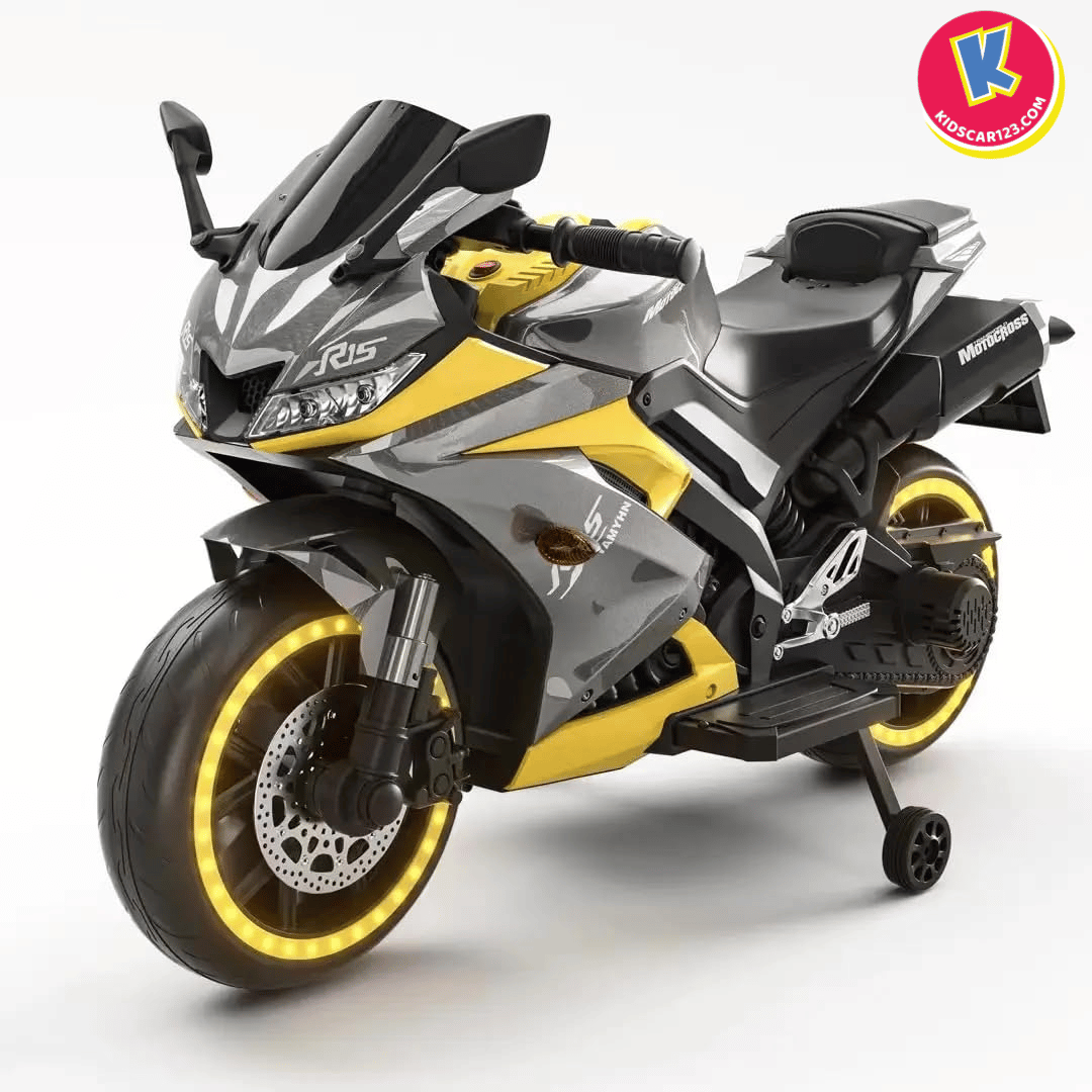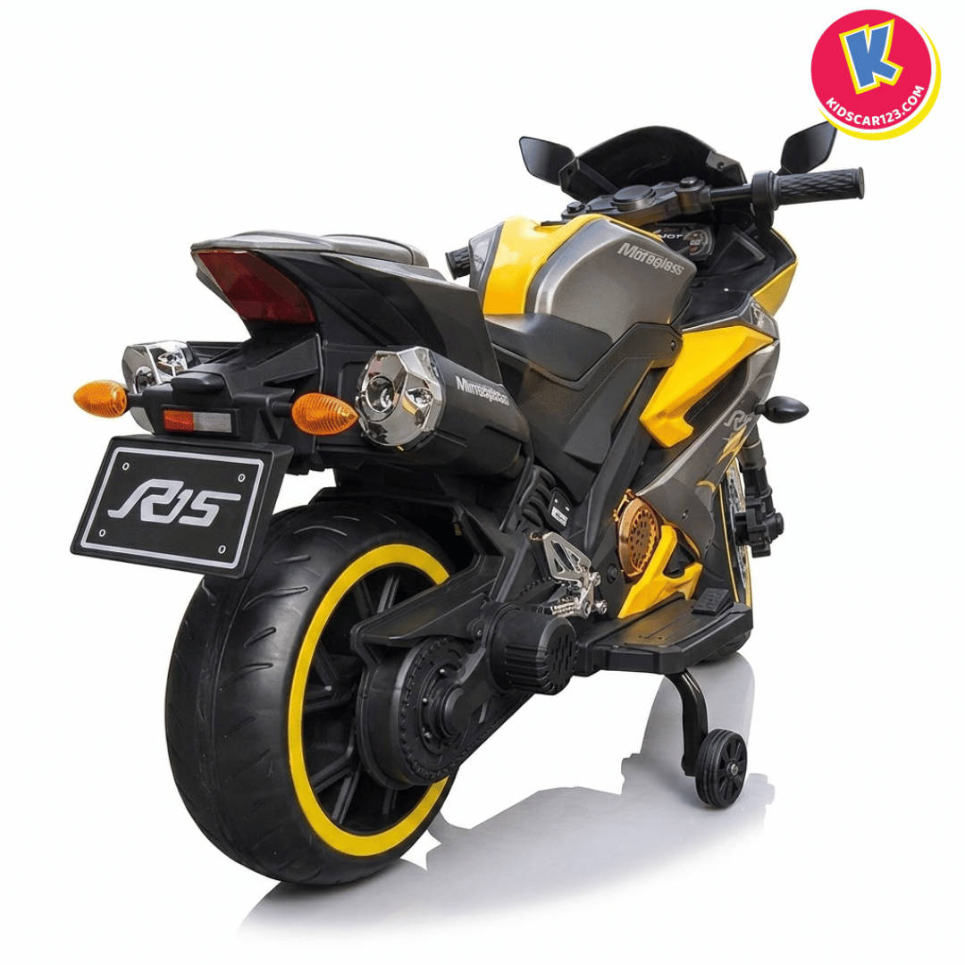 Nếu bé nhà bạn là một "tín đồ" của những chiếc xe đua tốc độ, luôn ngoái nhìn những chiếc mô tô phân khối lớn gầm rú trên đường, thì Xe Mô Tô Điện Trẻ Em R15 chính là món quà biến ước mơ của con thành hiện thực. Với thiết kế đậm chất Sportbike, những đường nét sắc sảo cắt xẻ khí động học và dàn đèn LED bánh xe "độc nhất vô nhị", R15 không chỉ là một món đồ chơi, mà là một "chiến mã" thực thụ khẳng định cá tính cực ngầu của bé.