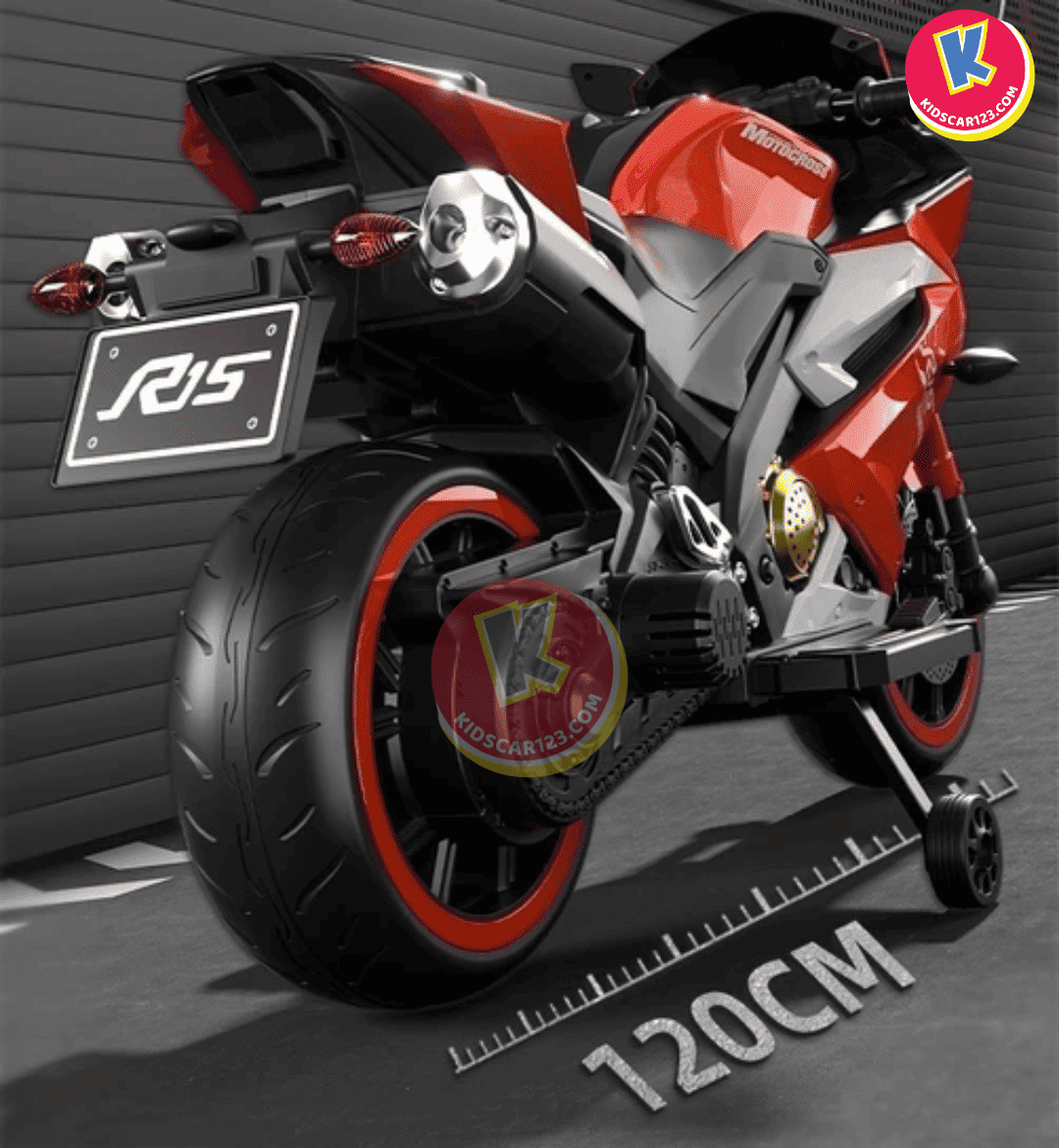 Hình 3: Xe Mô Tô Điện Trẻ Em R15 Dáng Thể Thao Màu Đỏ
