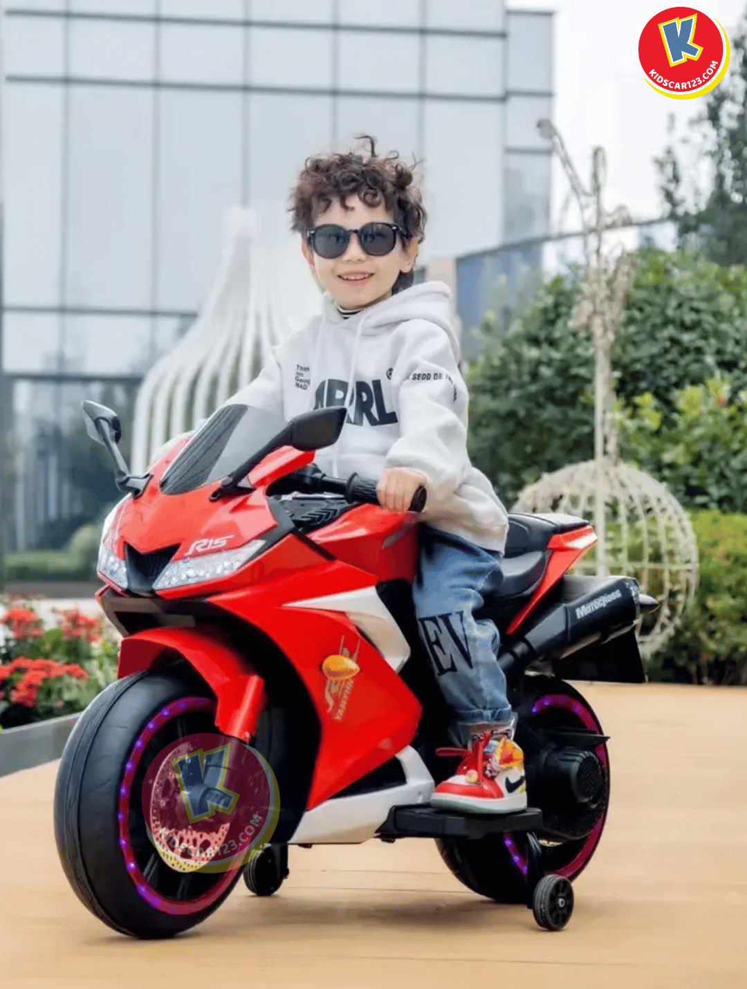 Mang đến cho con trải nghiệm tốc độ đầy an toàn và phấn khích. Chiếc xe mô tô điện R15 với bánh xe phát sáng chắc chắn sẽ là món quà khiến bé nhảy cẫng lên vì sung sướng.