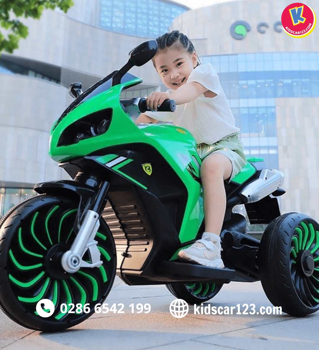 - Xe Mô Tô Điện Trẻ Em Ba Bánh S900 màu xanh lá cây
