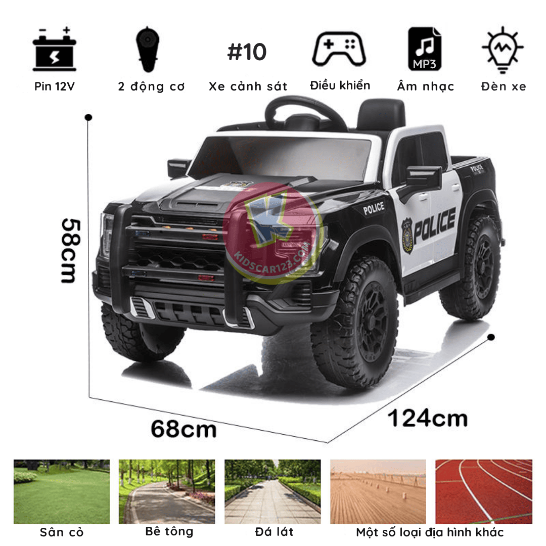 Hãy biến giấc mơ trở thành người thực thi công lý của bé thành hiện thực với Xe Ô Tô Điện Cảnh Sát P-5. Sự kết hợp hoàn hảo giữa thiết kế gầm cao mạnh mẽ của dòng xe bán tải và diện mạo đặc nhiệm oai phong, chiếc P-5 không chỉ là một món đồ chơi mà còn là người bạn đồng hành, giúp bé rèn luyện sự tự tin và khả năng vận động mỗi ngày.