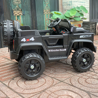 Mỗi đường nét đều mô phỏng nguyên bản xe địa hình với khung gầm chắc chắn, logo ngôi sao ba cánh nổi bật ở đầu xe. Kích thước ấn tượng: D108x R62 x C57 cm, chiều ngang ghế 50cm – cho bé thoải mái ngồi, lái như một tay đua thực thụ.