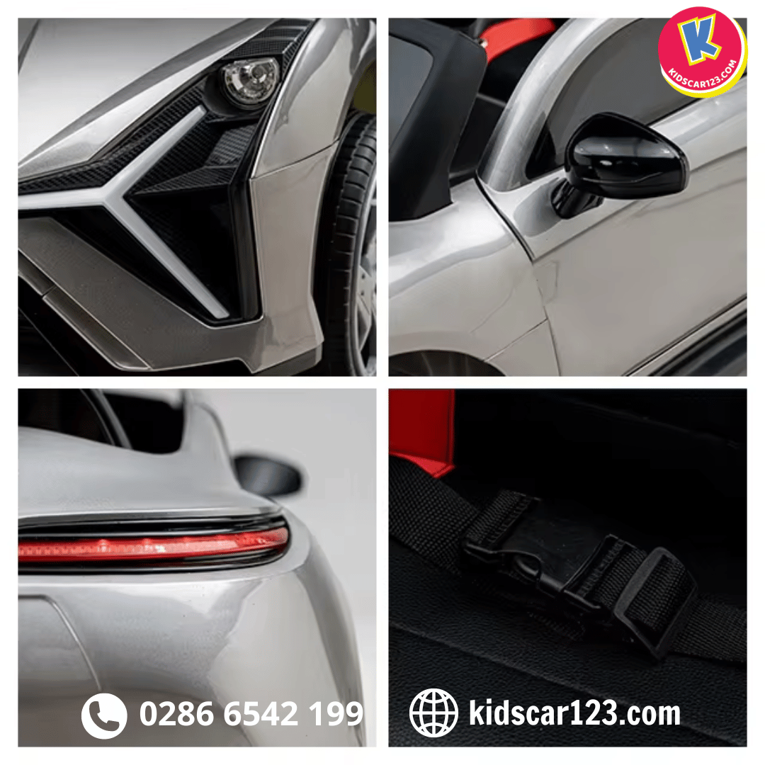 Mỗi đường nét của HZB-866 đều lấy cảm hứng từ dòng siêu xe Lamborghini nổi tiếng, với đầu xe cá tính, đèn LED sắc nét như ánh mắt siêu sao, và đặc biệt là cửa mở kiểu cắt kéo “độc bản” – bé chỉ cần mở cửa là đã khiến cả sân chơi trầm trồ!