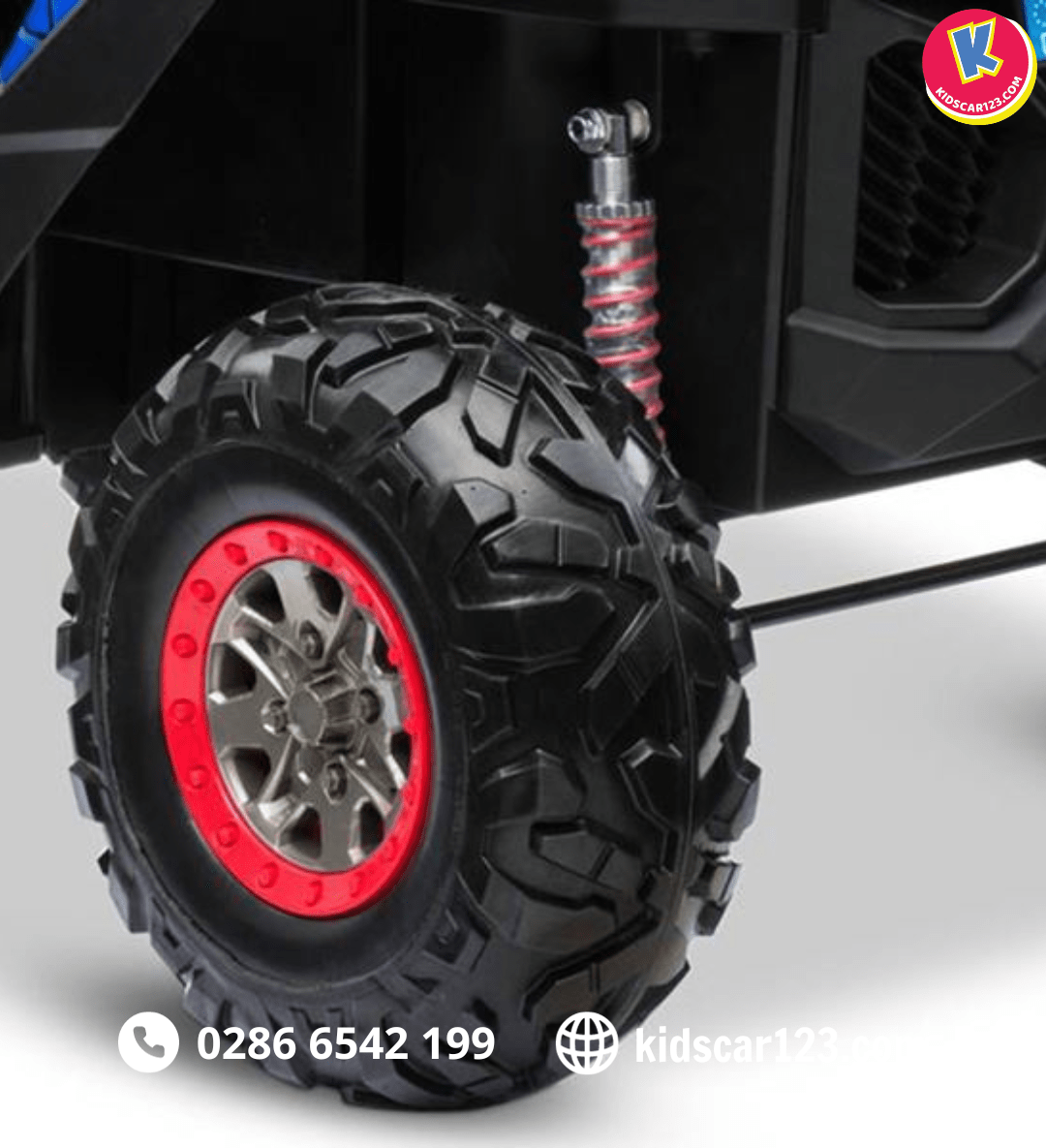 - Bánh Xe Chất Lượng: Xe được trang bị bánh xe cao su lớn, có độ bám tốt và rãnh sâu, giúp đem đến sự an toàn tuyệt đối khi bé lái xe.