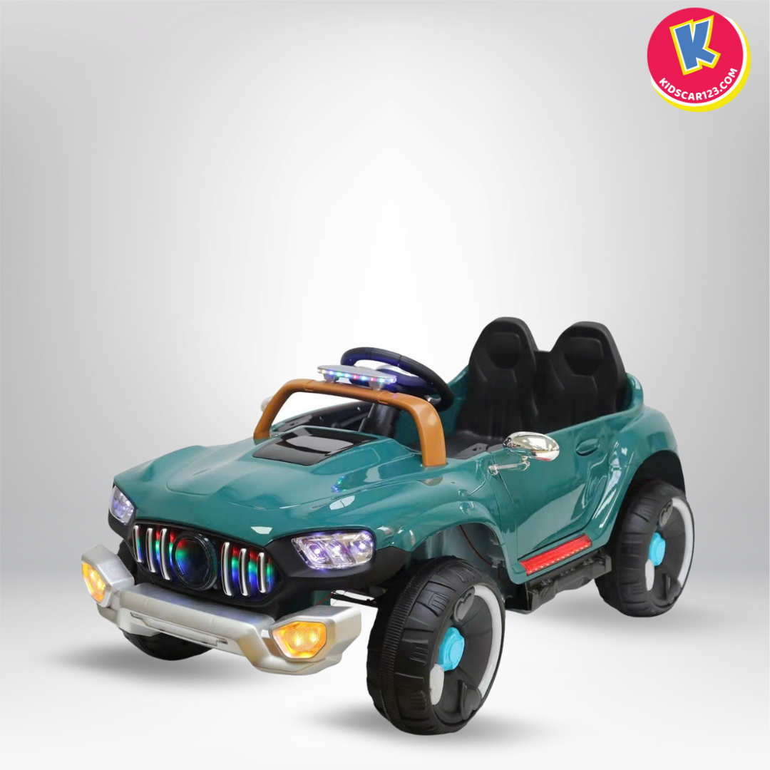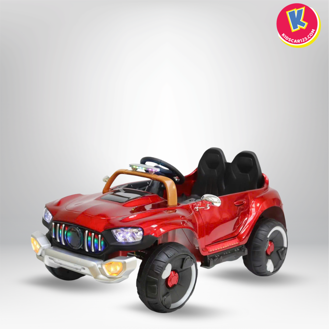 Mỗi đường nét đều mô phỏng nguyên bản xe địa hình với khung gầm chắc chắn, logo ngôi sao ba cánh nổi bật ở đầu xe. Kích thước ấn tượng: D122 x R65 x C43 cm, chiều ngang ghế 50cm – cho bé thoải mái ngồi, lái như một tay đua thực thụ.