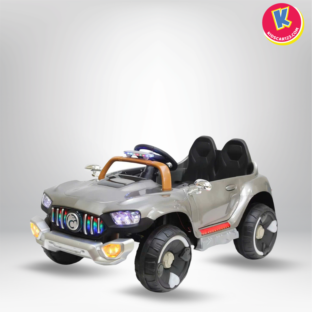 Chiếc xe điện trẻ em trong hình mang kiểu dáng đậm chất xe địa hình hầm hố, màu sắc sang trọng và thiết kế siêu ăn tượng: