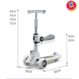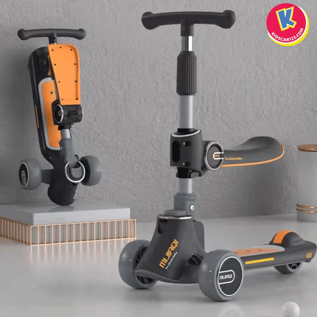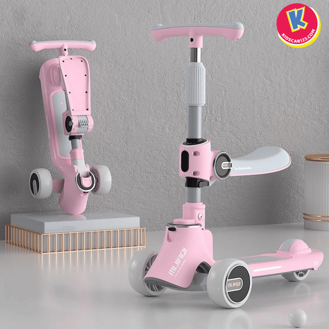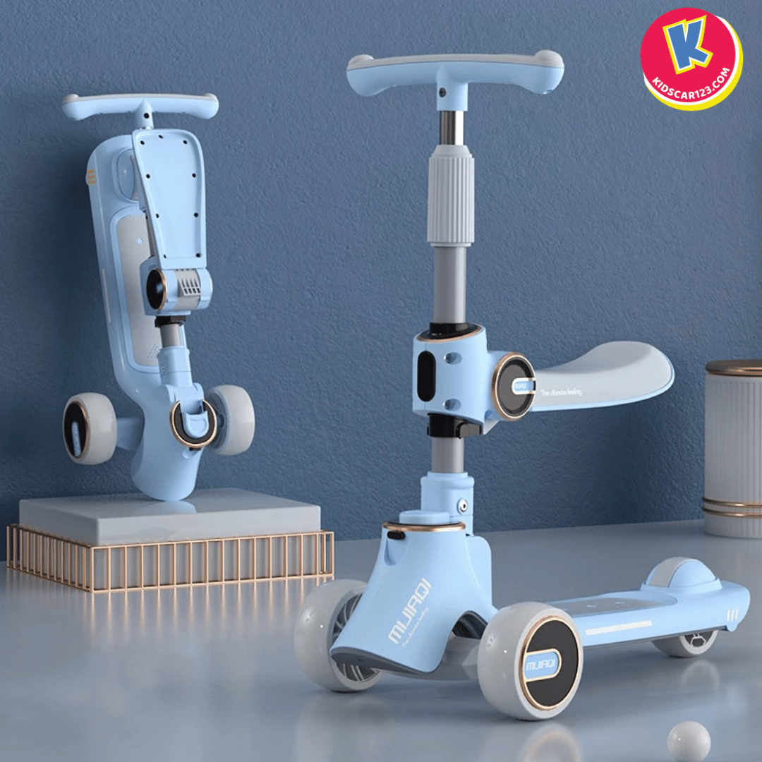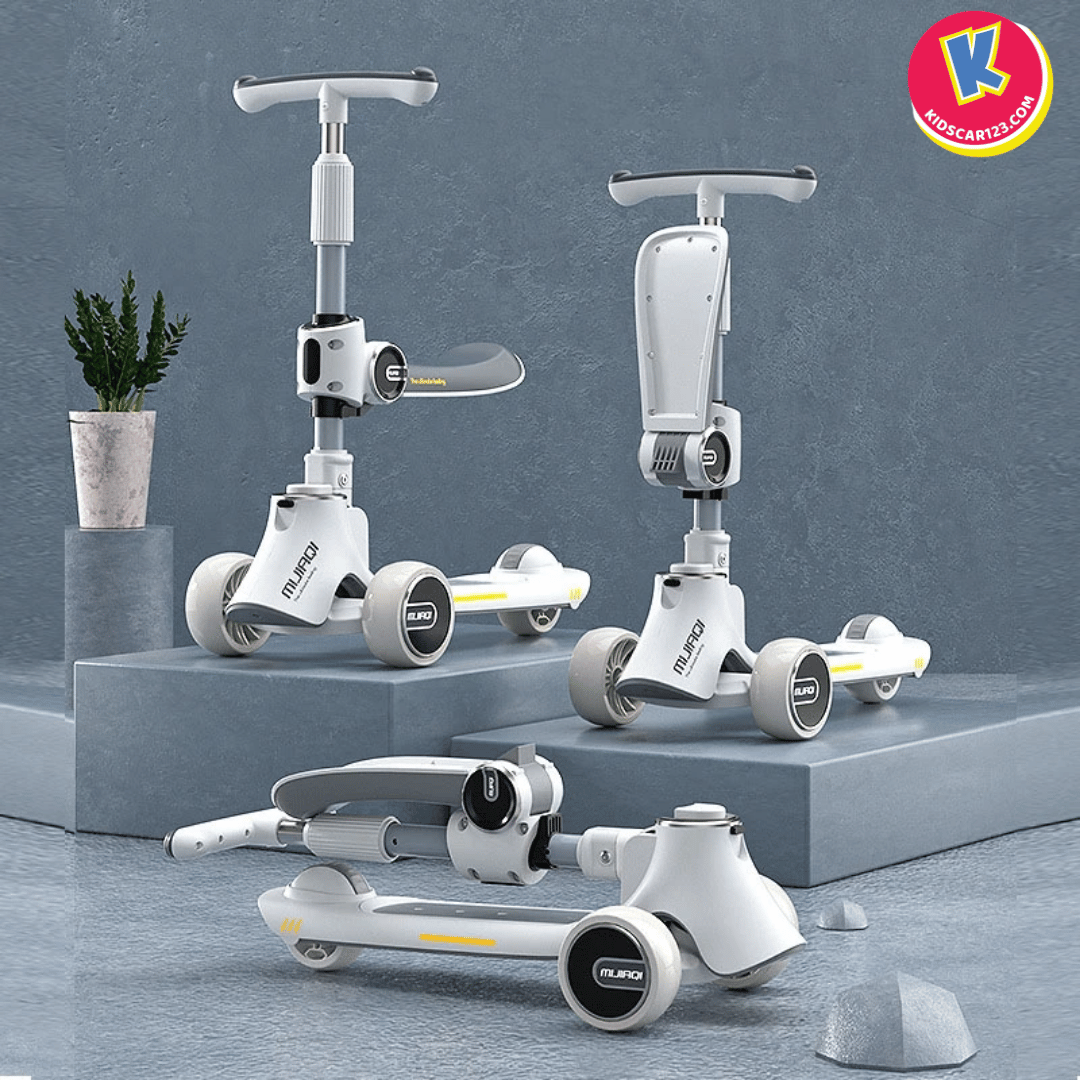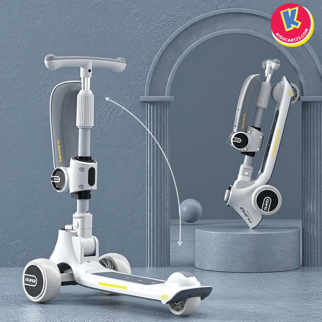 Mô tả: Khi bé đã cứng cáp hơn, bố mẹ chỉ cần gập gọn phần ghế ngồi lên phía trước, chiếc xe ngay lập tức biến thành một chiếc scooter 3 bánh năng động. Cổ xe có thể điều chỉnh độ cao để phù hợp với vóc dáng, giúp bé có những giờ phút vận động đầy sảng khoái và tự tin.