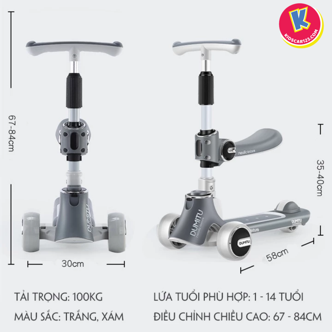 Hãy khám phá ngay giải pháp vận động "2 trong 1" đầy thông minh và tiết kiệm cho bé yêu với xe trượt scooter đa năng DMF-001. Được thiết kế để đồng hành cùng bé qua hai giai đoạn phát triển quan trọng, sản phẩm này dễ dàng chuyển đổi từ một chiếc xe chòi chân vững chãi thành một chiếc scooter năng động, kết hợp cùng các tính năng giải trí hiện đại như đèn LED và loa Bluetooth!