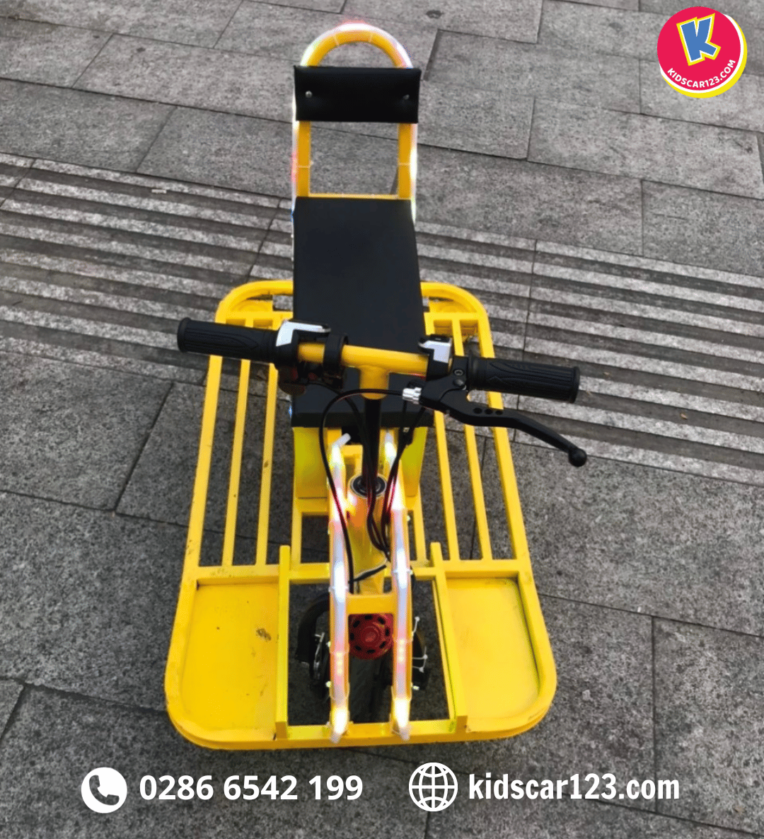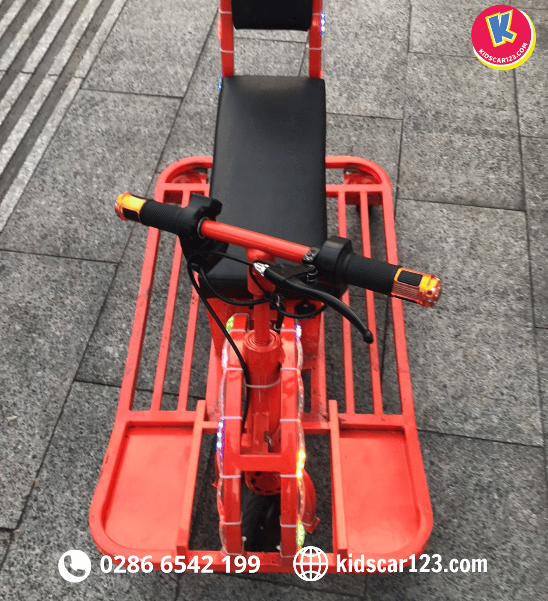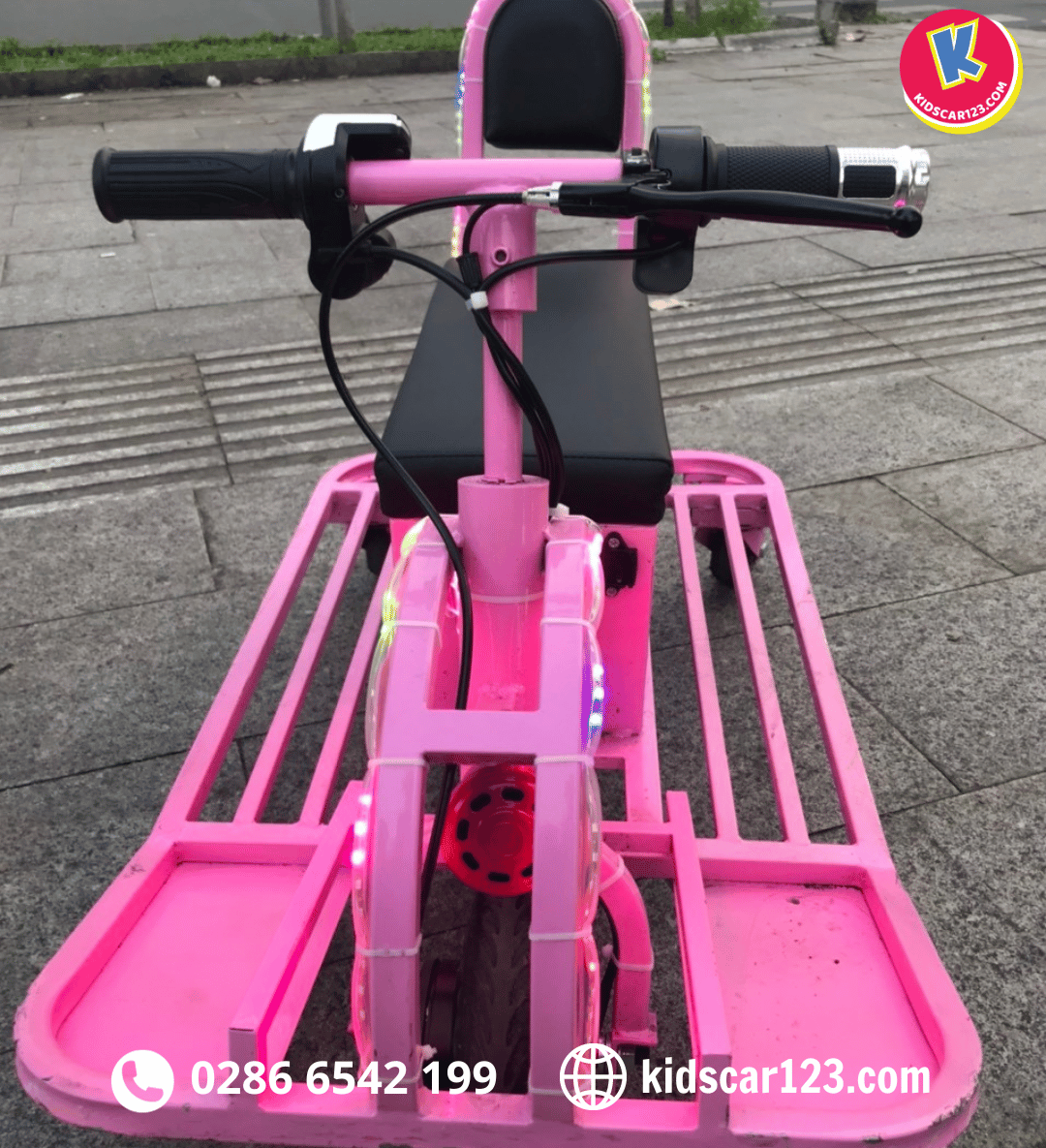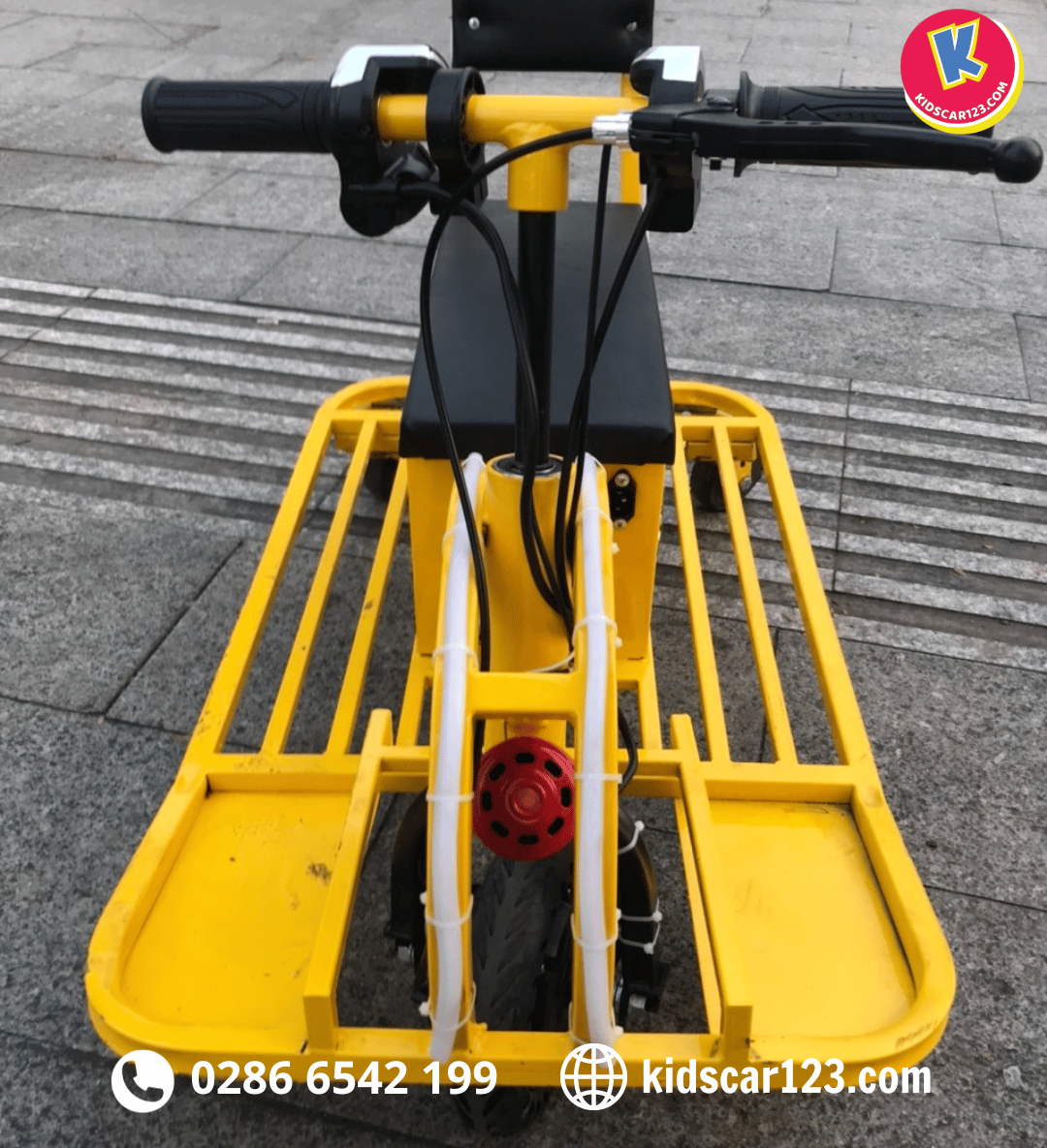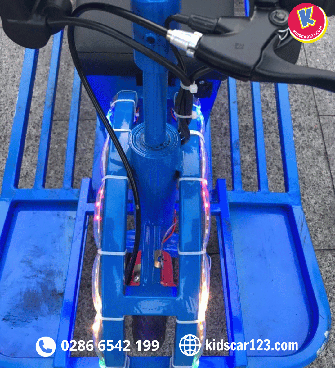 - Bánh cố định có lò xo phuộc nhún: xe dễ chơi, dễ lái. Bánh cao su đặc bền. Đặc biệt là lò xo phuộc nhún êm ái khi đi qua những chỗ gồ ghề.