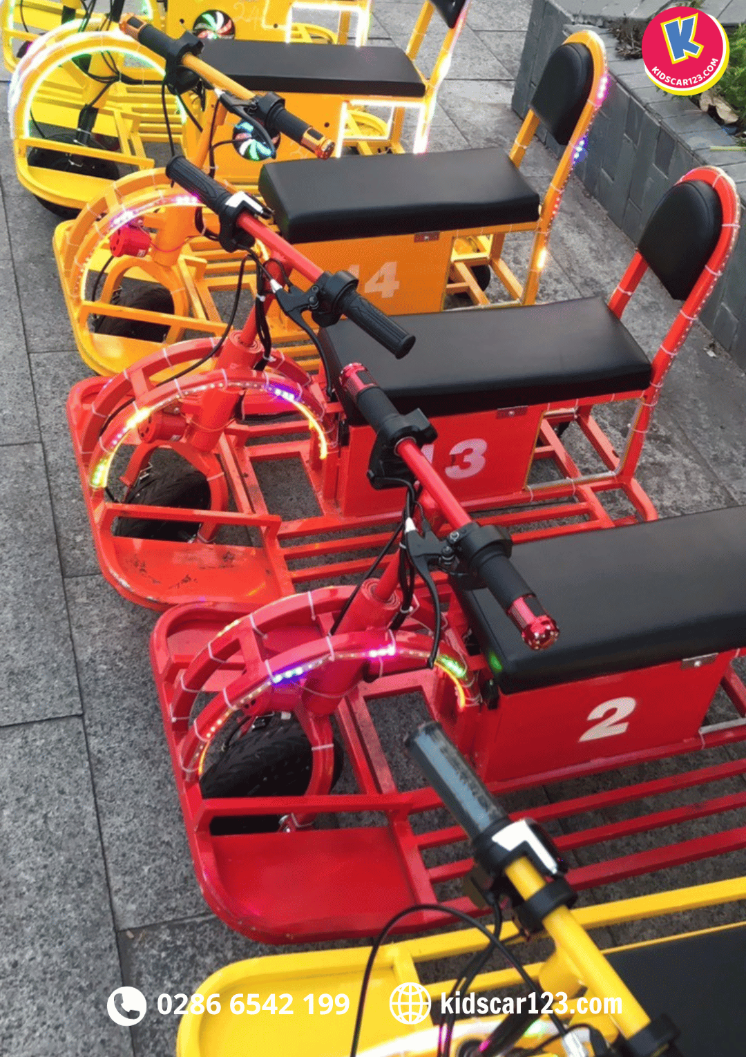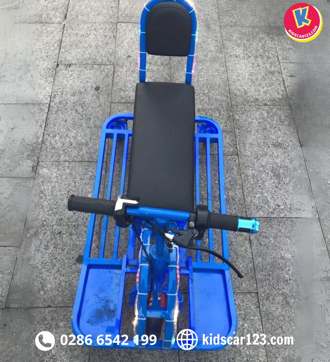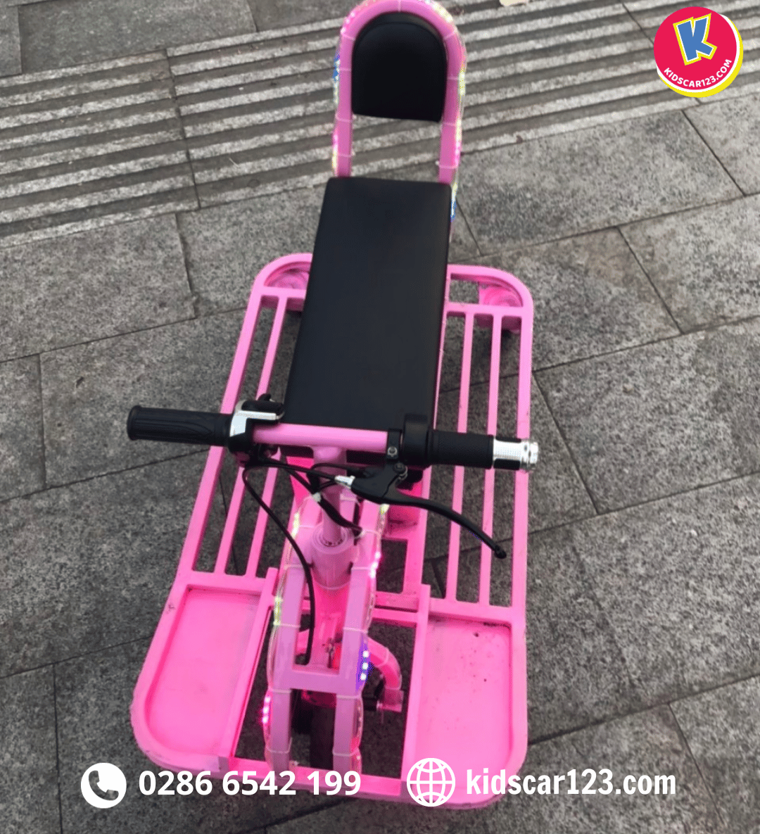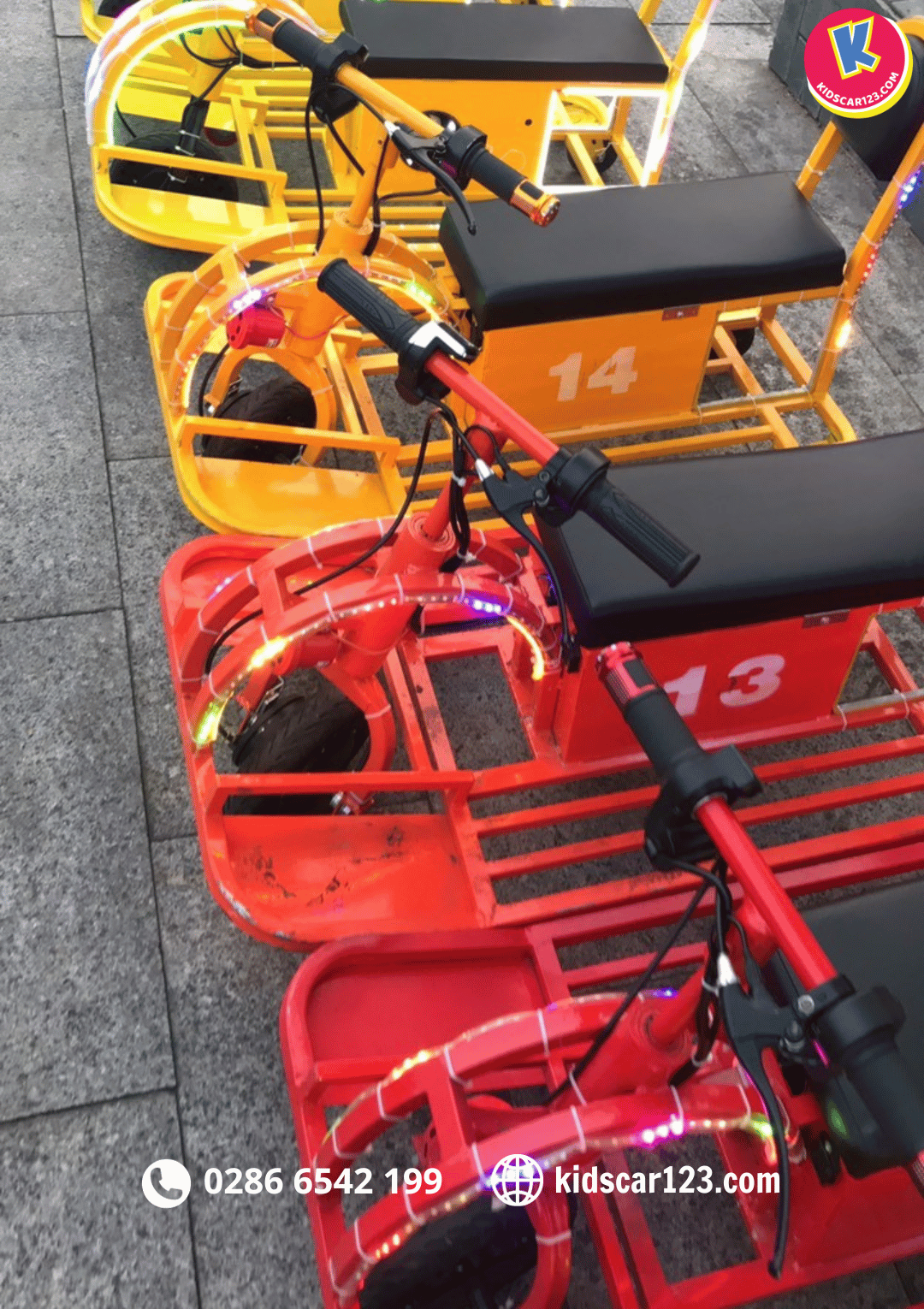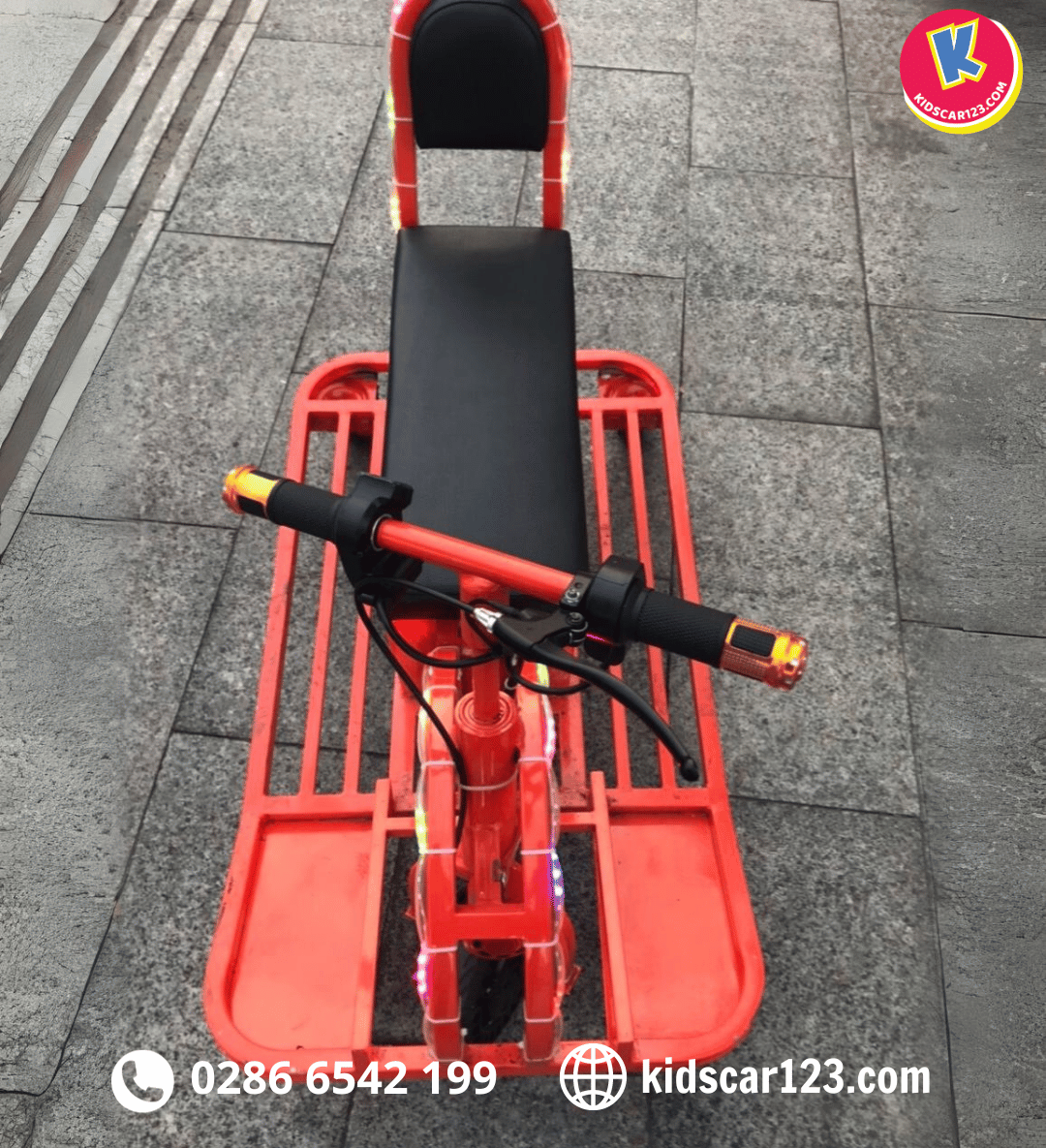 - Bánh cố định có lò xo phuộc nhún: xe dễ chơi, dễ lái. Bánh cao su đặc bền. Đặc biệt là lò xo phuộc nhún êm ái khi đi qua những chỗ gồ ghề.